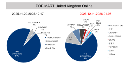 在欧美,目前线上销售中Labubu占比仍高,但报告认为这反映的是渠道发展阶段问题。