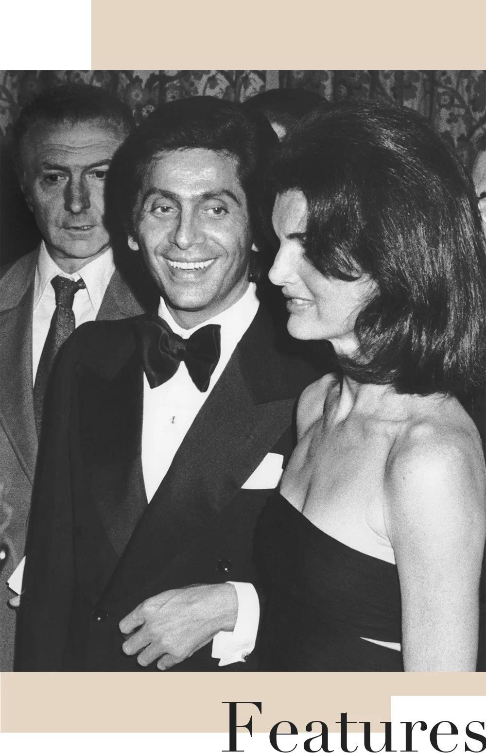 1964年的一次聚会上,时尚编辑Gloria Schiff穿着Valentino黑色欧根纱套装的优雅身姿给Jacqueline Kennedy留下了深刻印象,她随即通过Schiff与品牌取得联系。同年9月,Valentino Garavani于美国纽约发布新系列之际,Jacqueline向其订购了六件黑白色系连衣裙,在她为已故丈夫、肯尼迪总统哀悼的这一年里穿。以此为契机,Jacqueline不仅成了Valentino的忠实客户,也与设计师本人成为至交密友。