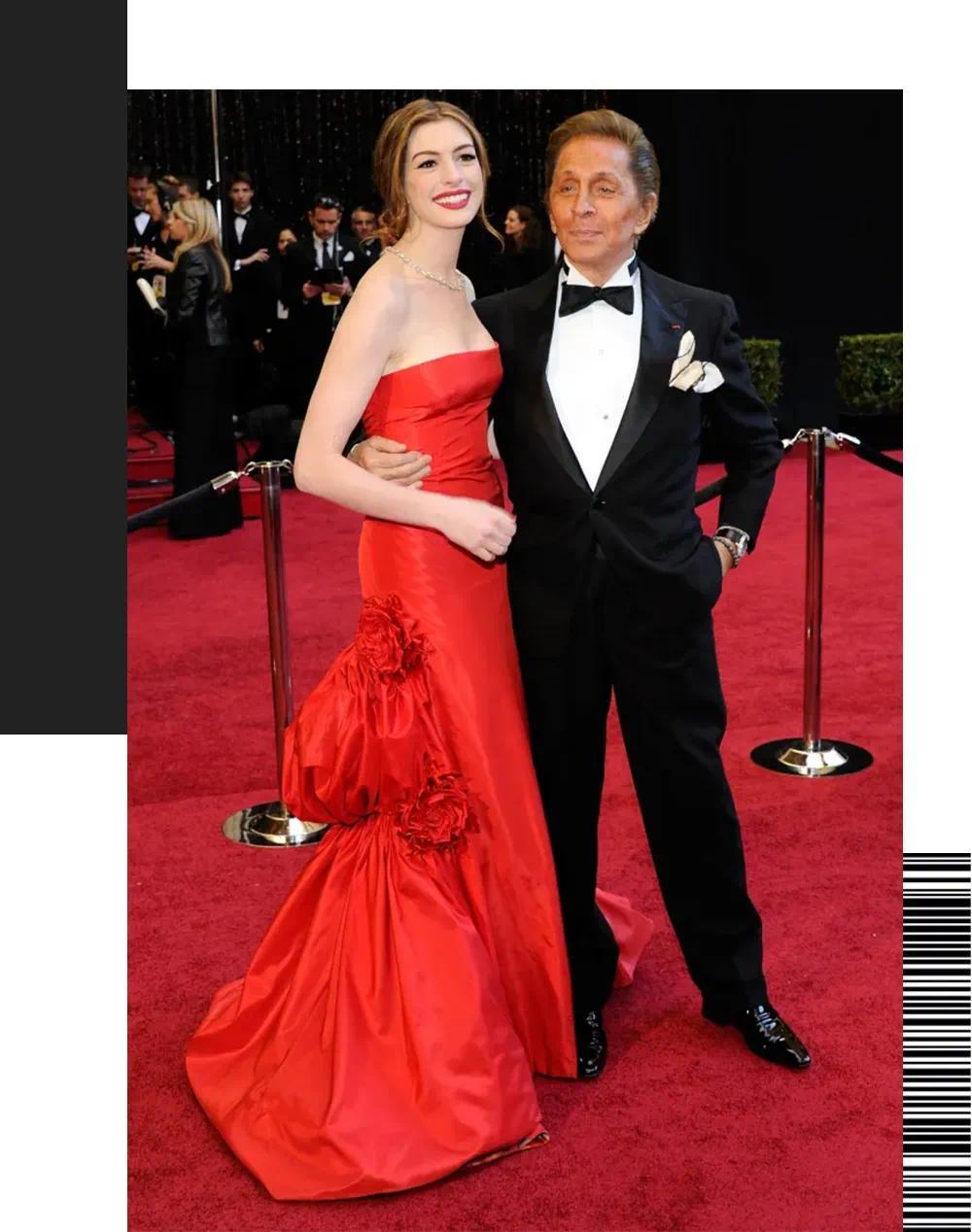 被许多人奉为“时尚启蒙”的影片《穿Prada的女魔头》中,令Emily魂牵梦萦、拼命减肥想要穿上的同样是Valentino红裙。不过在现实世界,率先穿上红色礼服的,是因这部戏与Valentino Garavani先生结缘的“小助理”Anne Hathaway。