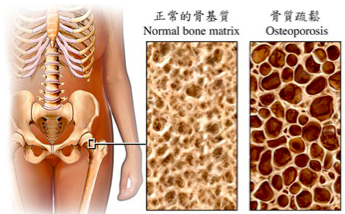 人体28岁的骨密度达到最高峰,随后一路下跌,40岁开始的骨质疏松是“无声无息的流行病”。这时,侵蚀骨骼的破骨细胞数(Osteoclast)会超过成骨细胞(Osteoblasts)数,破坏正常的骨基质(Bonematrix),形成骨质疏松,使骨头变得多孔脆弱,容易破裂骨折。另外,血中钙含量不足,女性绝经后雌激素下降等,也会出现骨质疏松。