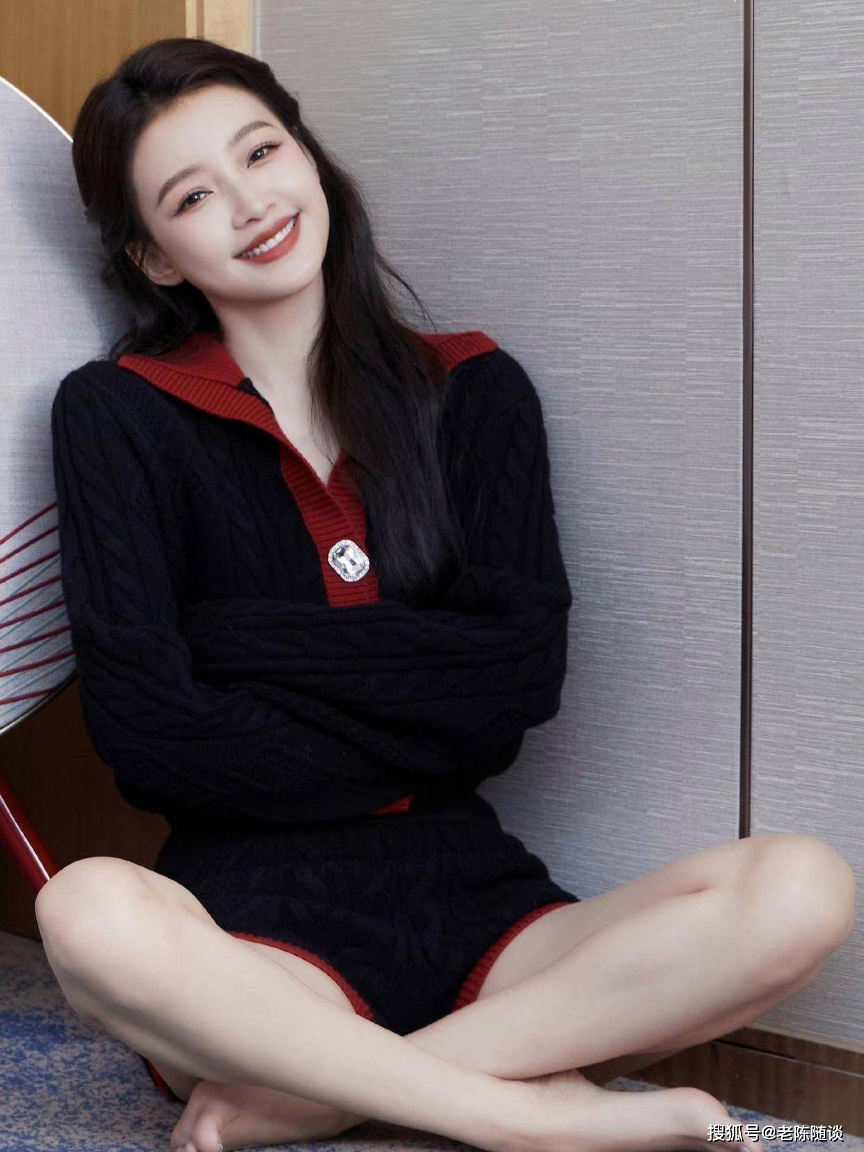 最近,孙怡穿着黑色翻领针织毛衣两件套搭配同色休闲短裤的造型引起了不少网友的关注。