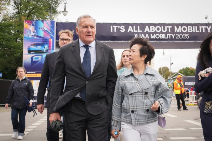 比亚迪顾问阿尔弗雷多?阿尔塔维拉与该公司高级副总裁李柯,摄于2025年9月慕尼黑国际车展期间。图片来源:Massimo Paolone/LaPresse /Zuma Press