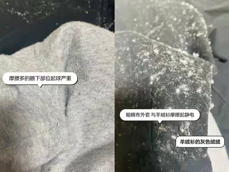 若是毛衣用料低劣,只需几次举手投足间的摩擦,腋下便会起球,让那份精致瞬间沦为廉价的尴尬。而当棉布外套遇上羊绒衫,静电的纠缠不仅带来身体的不适,更会让原本软糯的羊绒吸满毛絮,变得灰蒙蒙一片,失了原有的光泽。