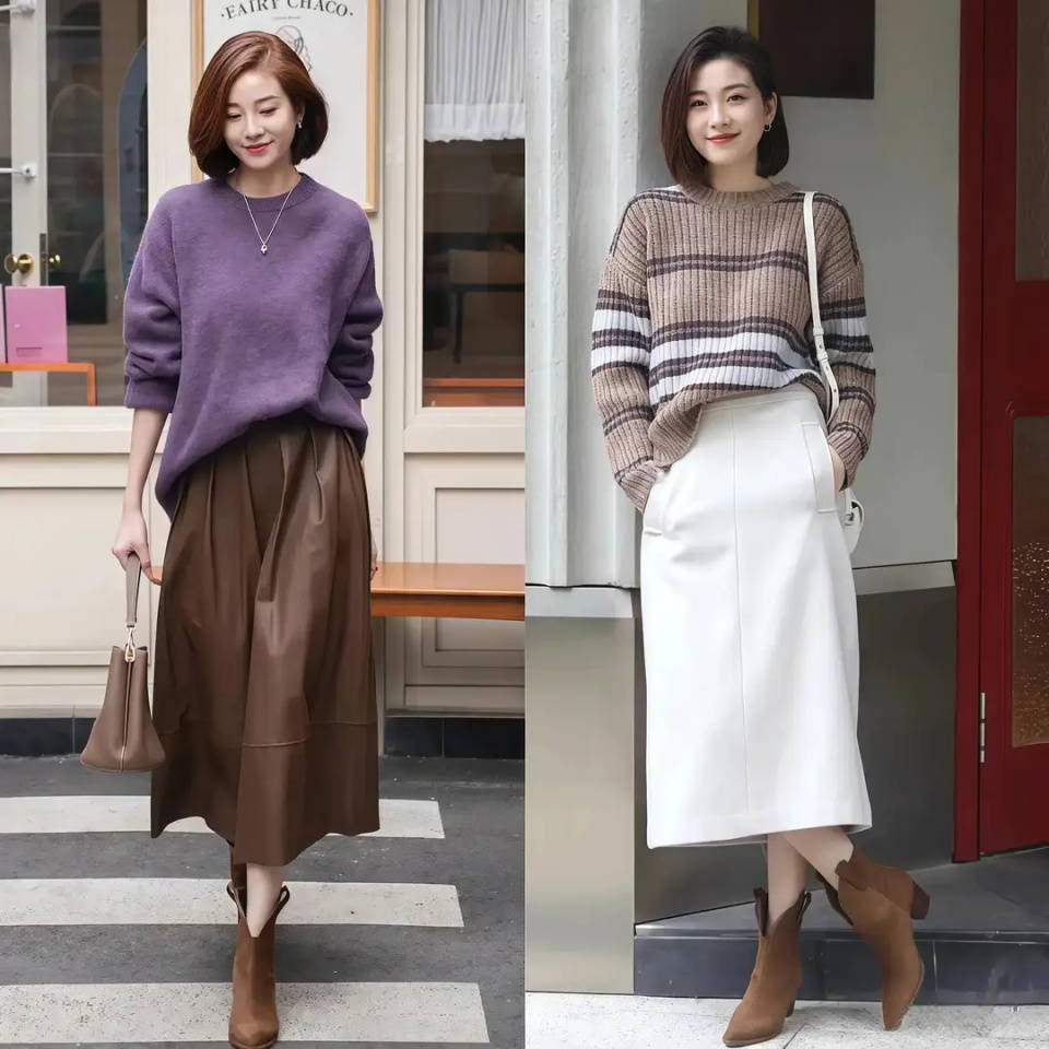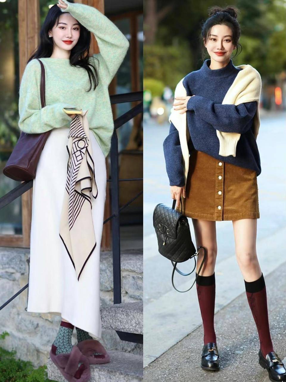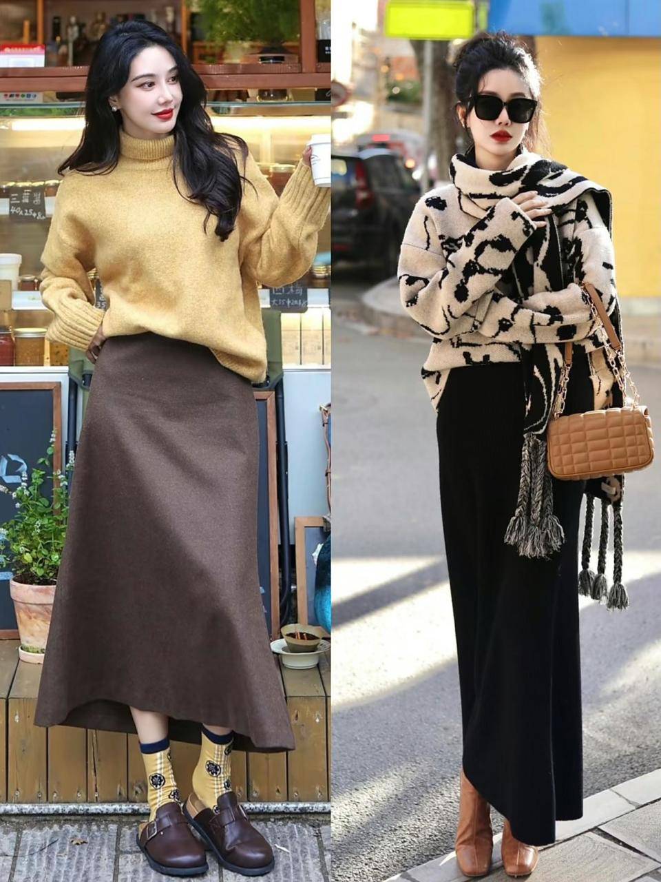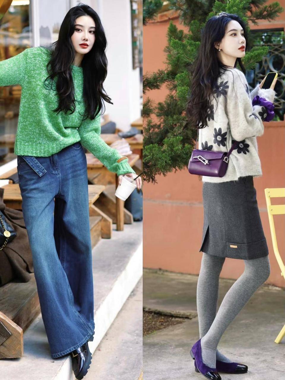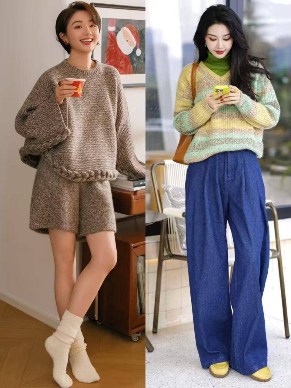 “毛衣 + 裙子与阔腿裤”,才是冬春顶流
