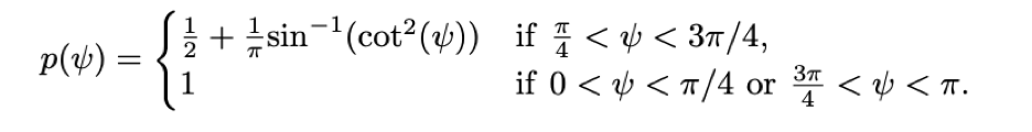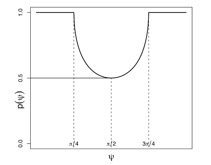 最终可以算出,如果硬币的起始面为正面,那么硬币落回手上时正面向上的概率与ψ的关系是: