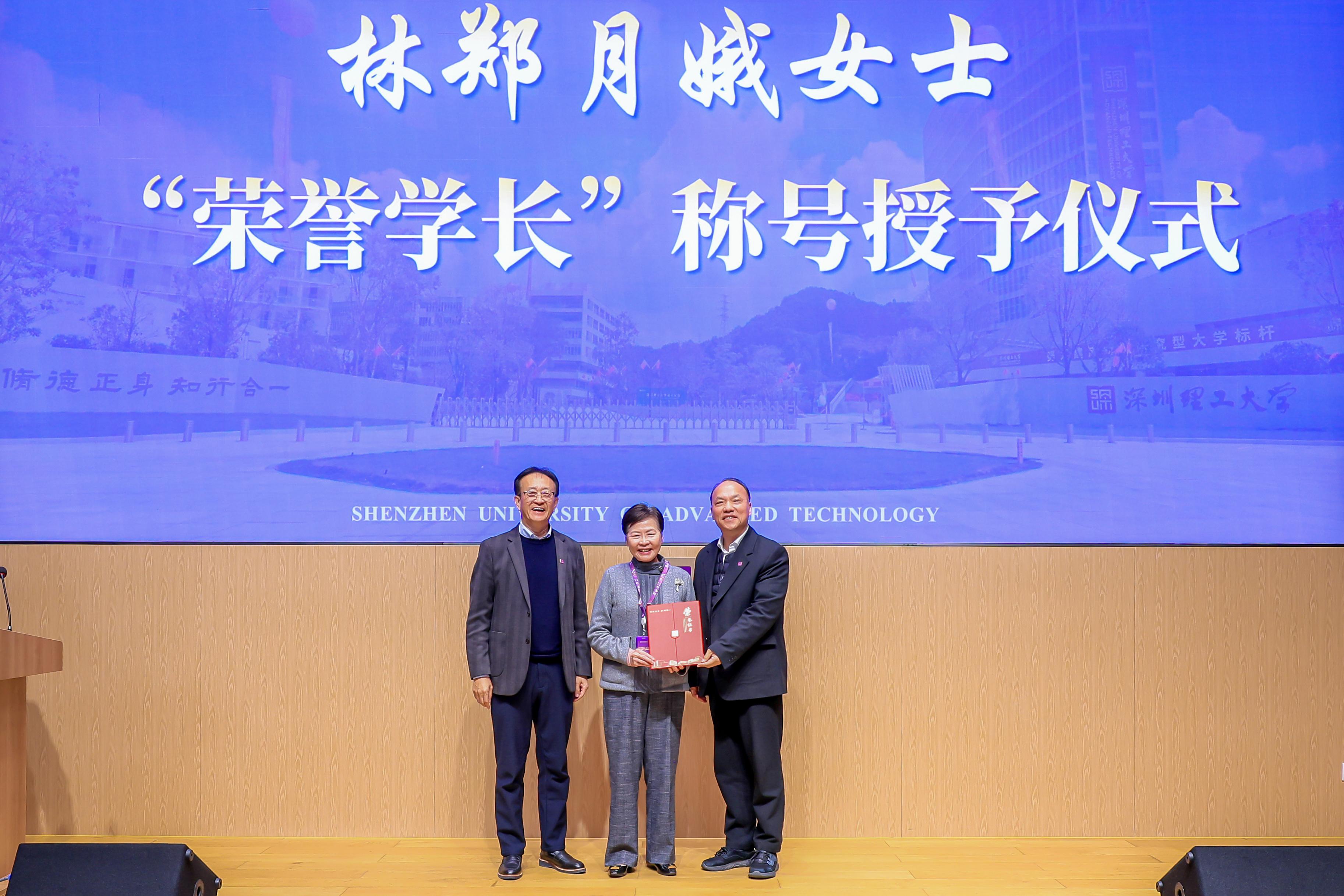 1月24日,香港特别行政区第五任行政长官林郑月娥,中国科学院院士、中国科学院学部主席团名誉主席、中国科学院原院长白春礼获授深圳理工大学“荣誉学长”。