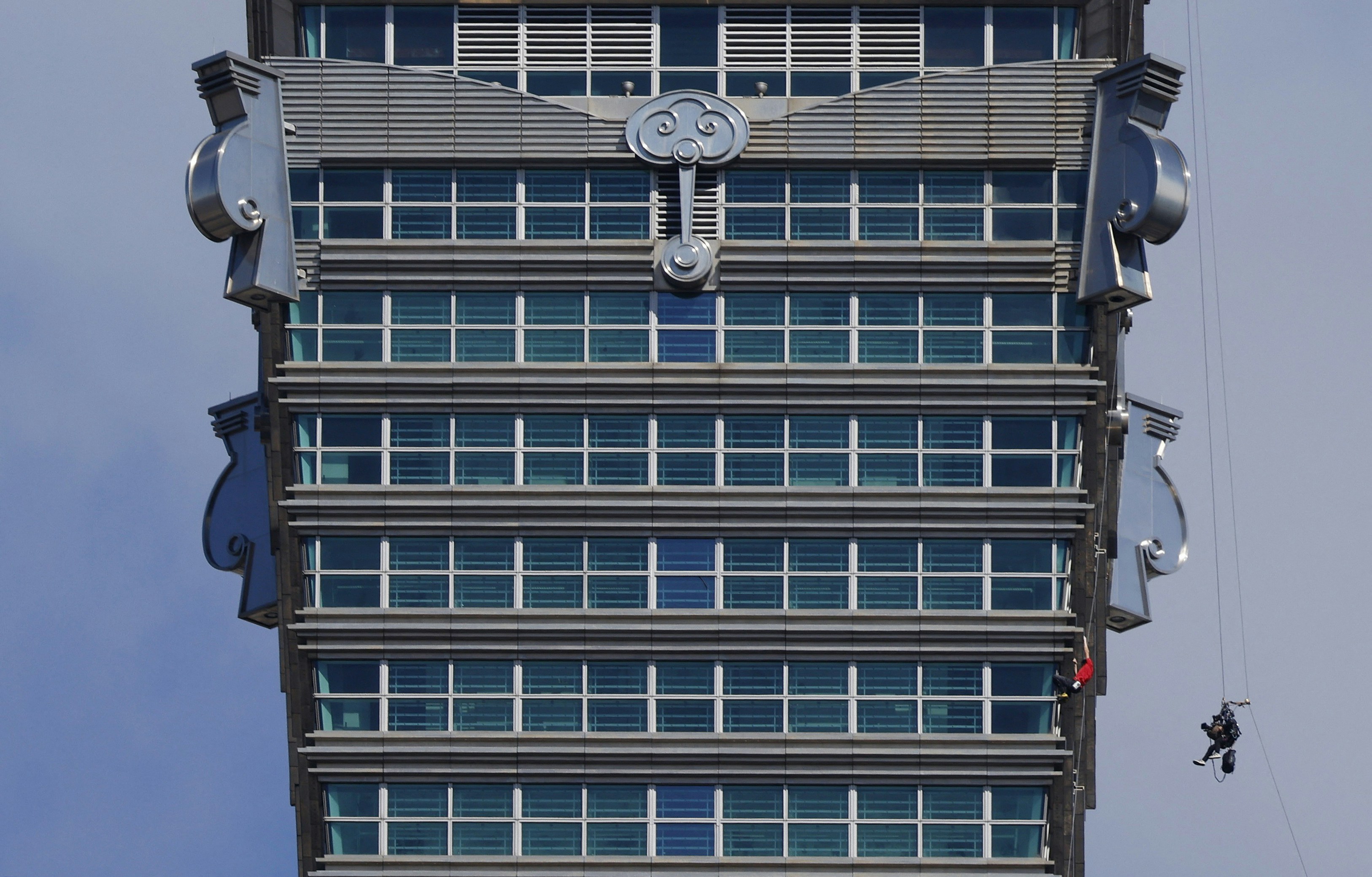 霍诺德25日上午攀爬台北101。(路透社)