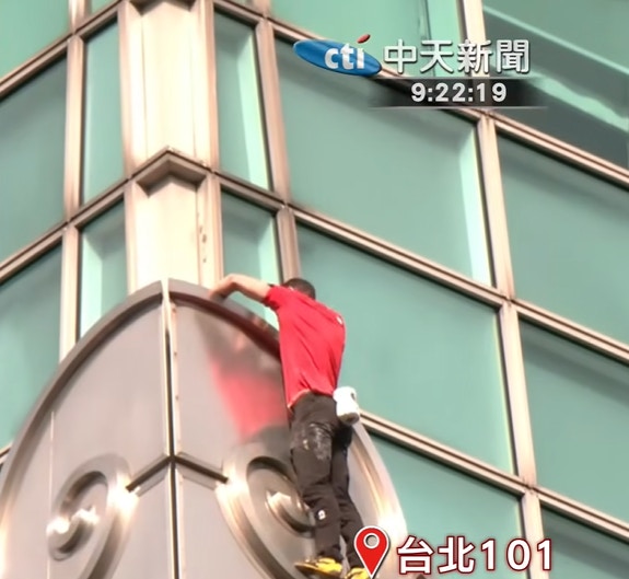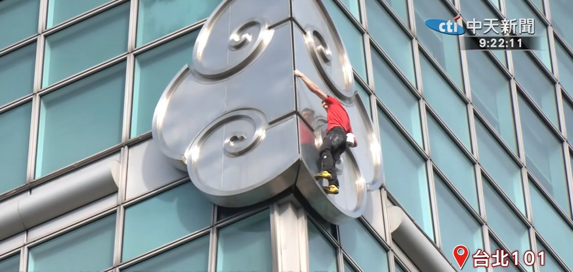 霍诺德25日上午攀爬台北101。(中天新闻@Youtube)