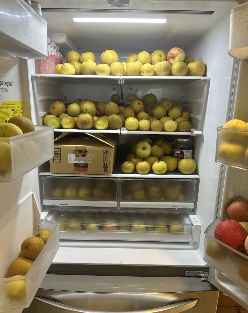 5 这是梨,当时加工一部份冻上,量太大,送亲家冰箱保存。