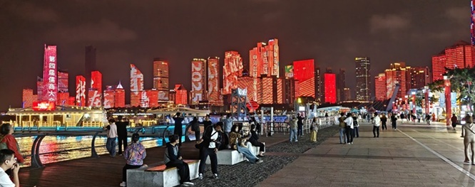 我转头看向窗外,浮山湾的灯光秀还在继续。因为是国庆期间,规模应该比平时更宏伟,大红、大绿、大紫轮流在高楼外墙循环上映,看久了,眼睛有点累。好像很多事情都是这样,看上去很漂亮,很有面子,一遍一遍地重复;重复久了,就有点让人喘不过气。