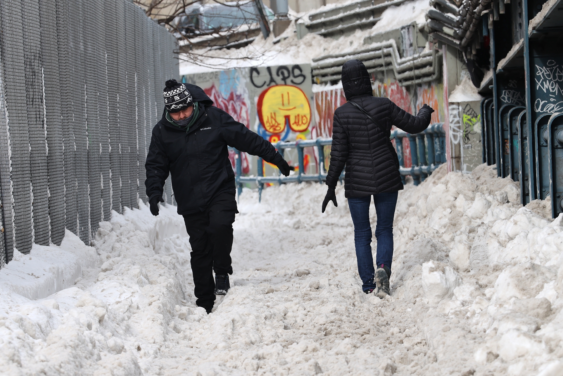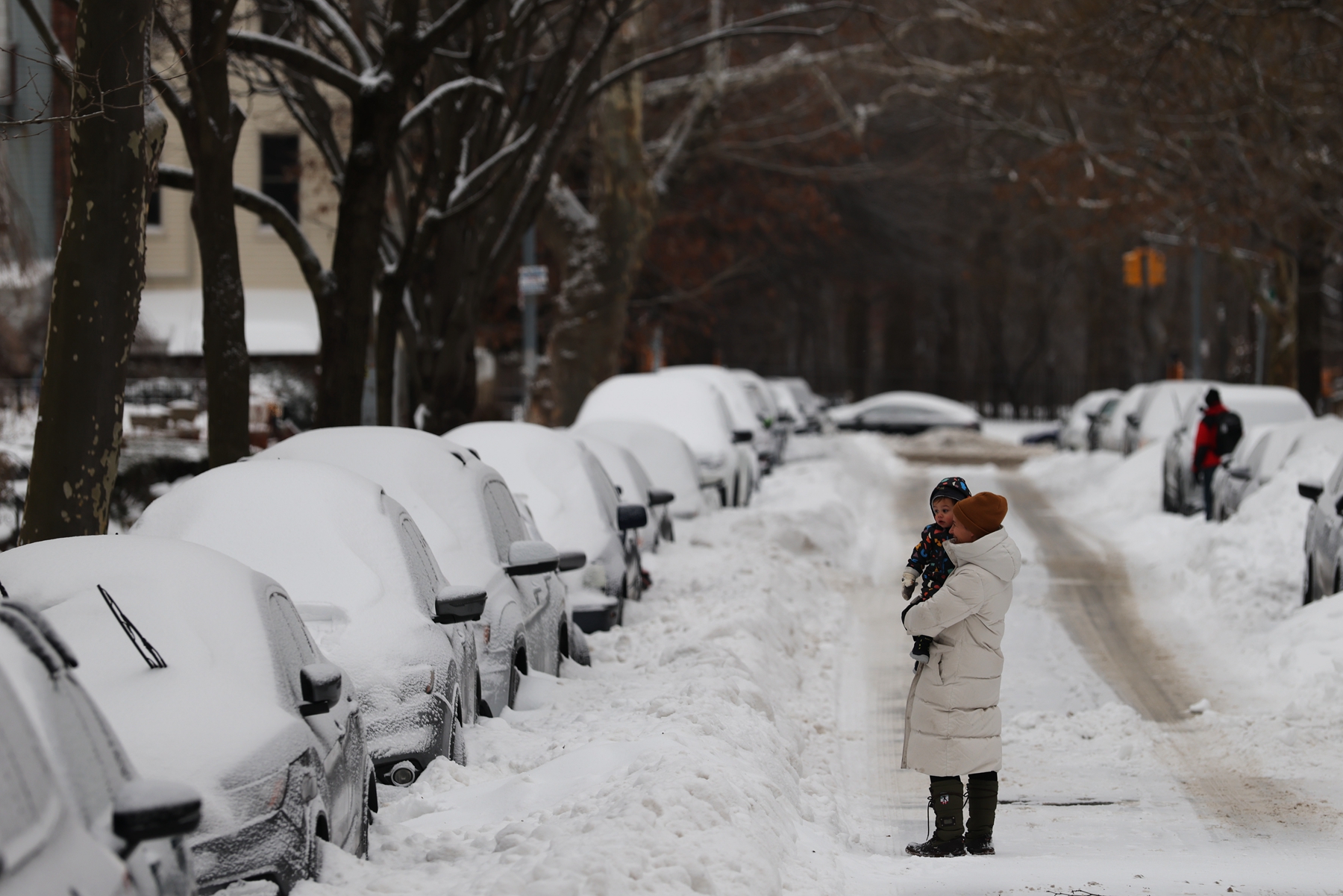 2026年1月26日,美国纽约市降下近一英尺的大雪后,人们在曼哈顿大桥上的积雪中艰难行走。(Spencer Platt/Getty Images)2026年1月26日,美国纽约市降下近一英尺的大雪后,市政工人驾驶犁式除雪车,清理曼哈顿市政厅外的积雪。(Spencer Platt/Getty Images)2026年1月25日,在历史性特大冬季风暴中的纽约,街道两边汽车上覆盖厚厚的白雪。(Samira Bouaou/英文大纪元)2026年1月25日,一场冬季风暴为纽约市带来罕见的大雪。(Samira Bouaou/英文大纪元)华盛顿特区