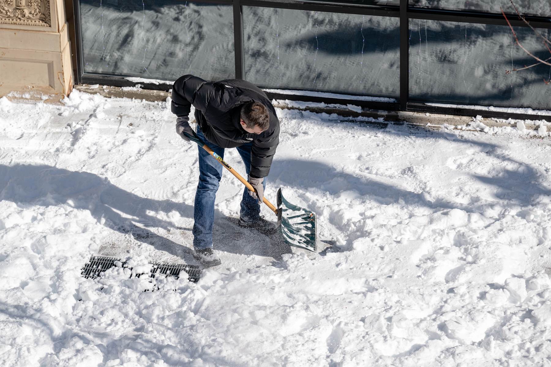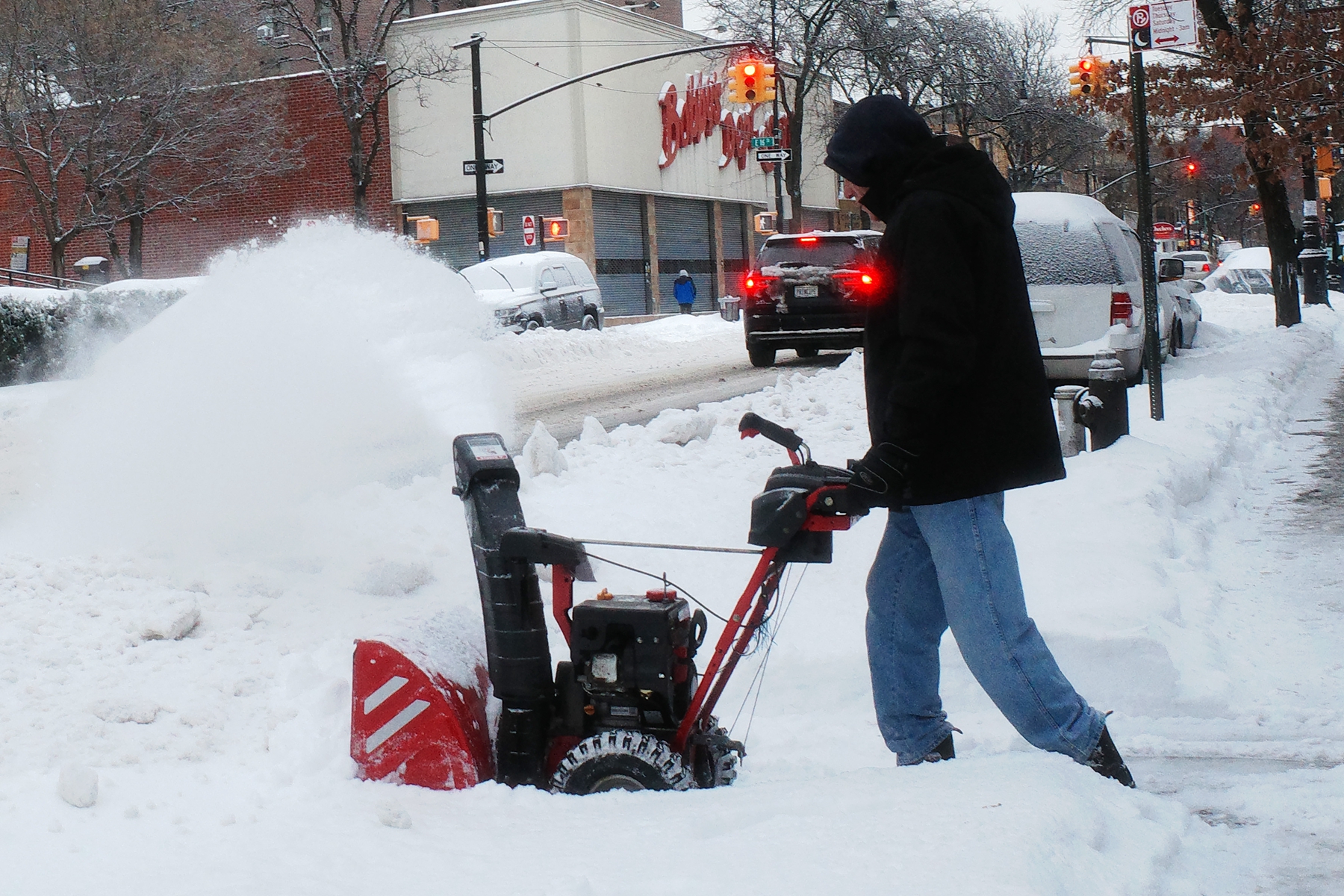 2026年1月26日,康涅狄格州斯坦福,一名男子正在清理车道上厚厚的积雪。(John Moore/Getty Images)