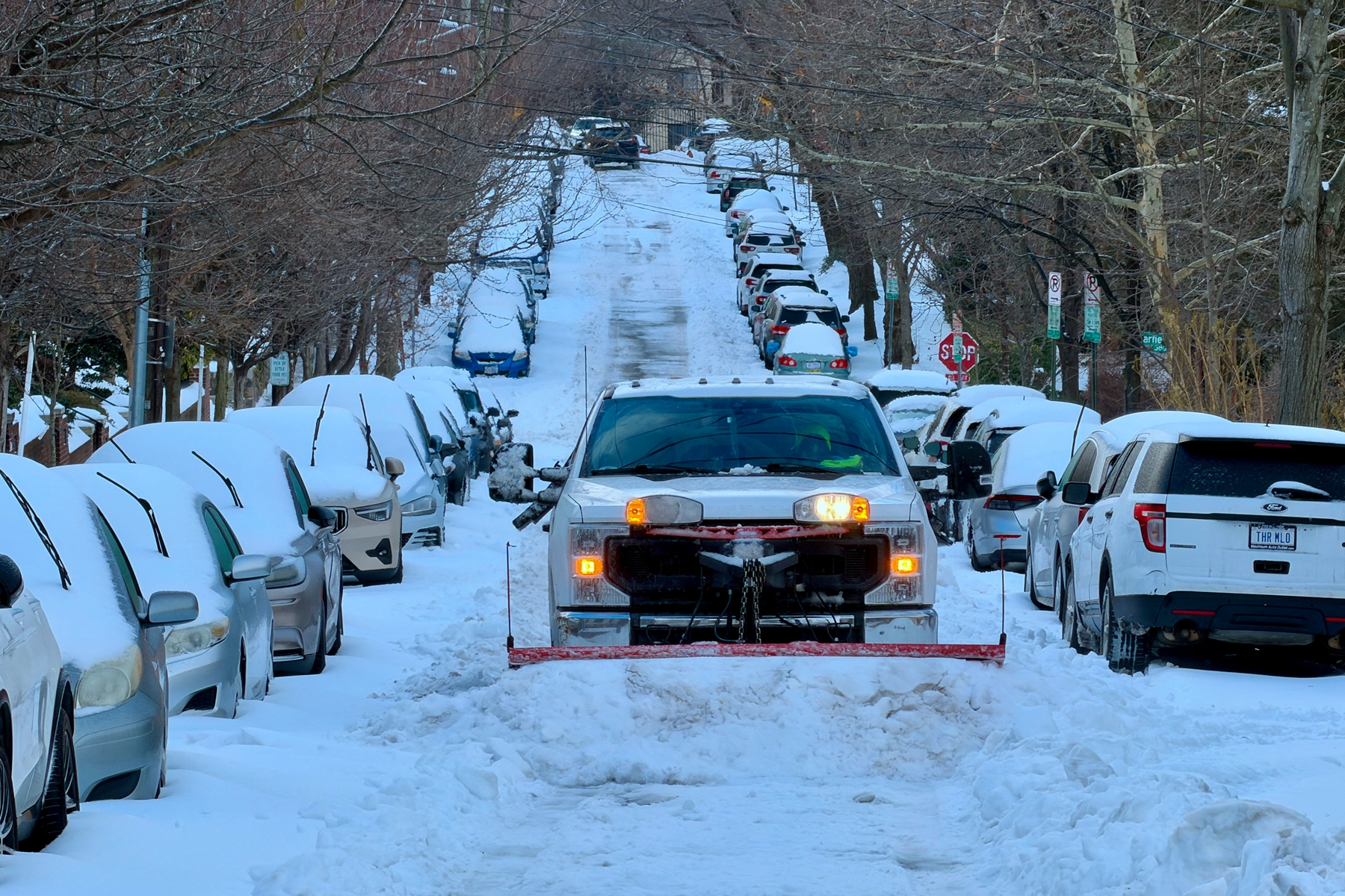 2026年1月26日,美国华盛顿特区,一辆卡车正在清理居民区街道上的积雪。(Daniel Slim/AFP via Getty Images)波士顿