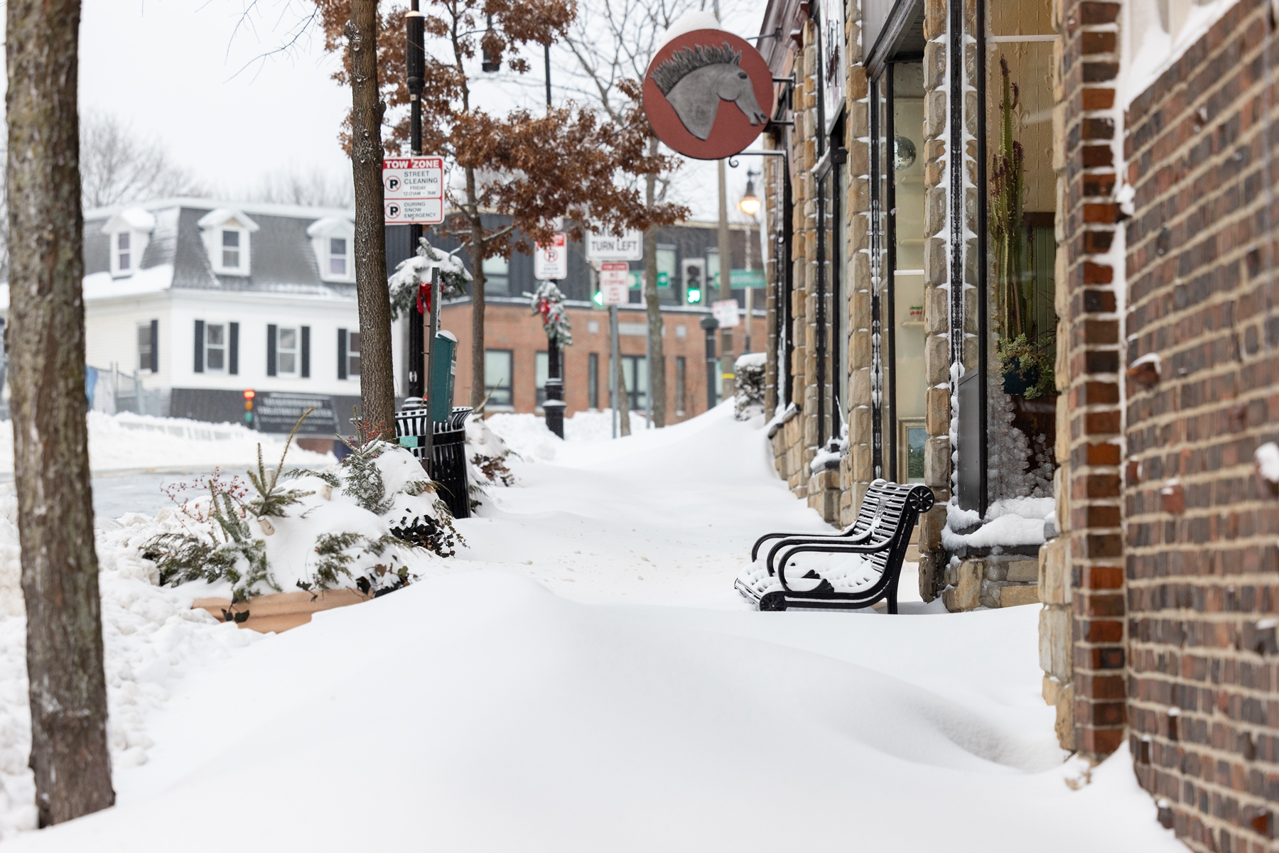 2026年1月26日,马萨诸塞州首府波士顿,人行道被厚厚的积雪覆盖。近日,一场巨大的冬季风暴给该地区带来了一英尺(约30厘米)厚的积雪。(Scott Eisen/Getty Images)