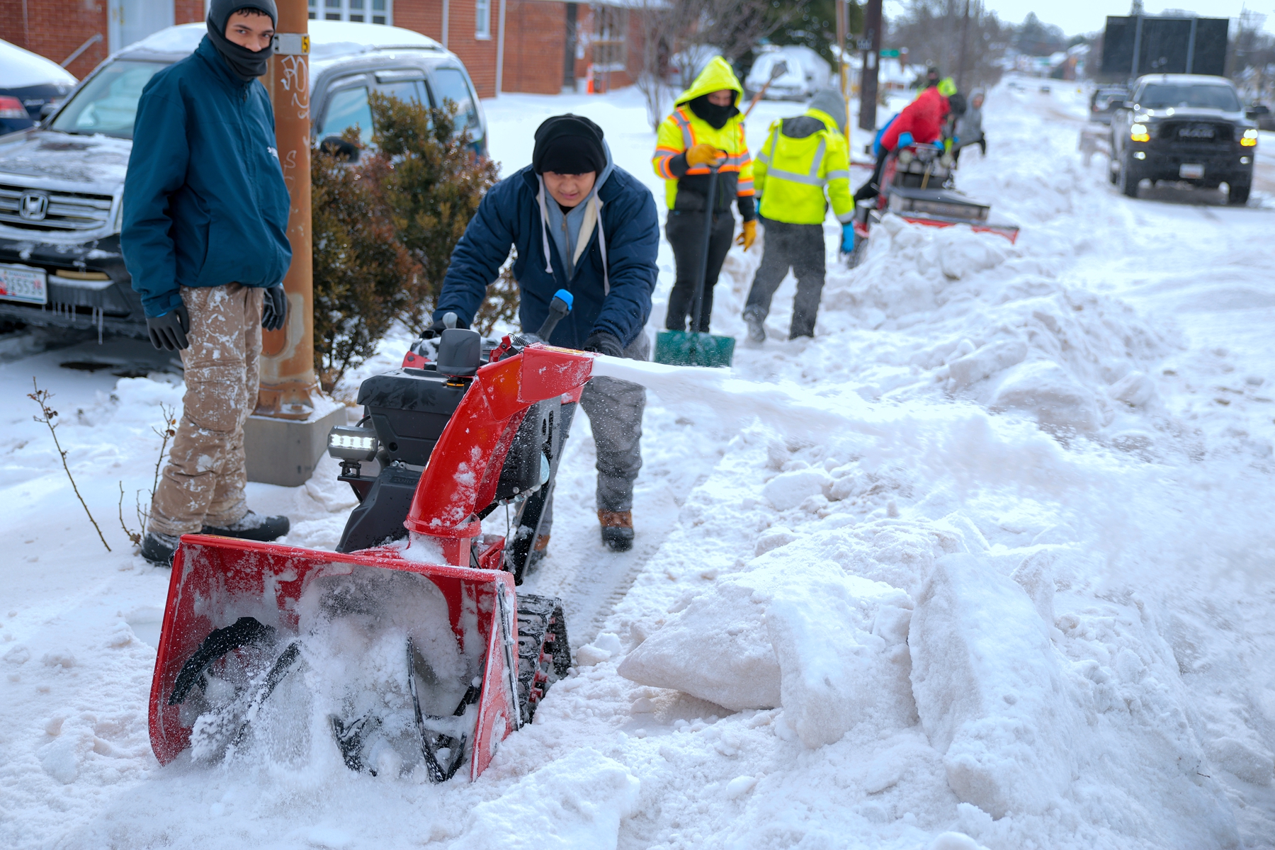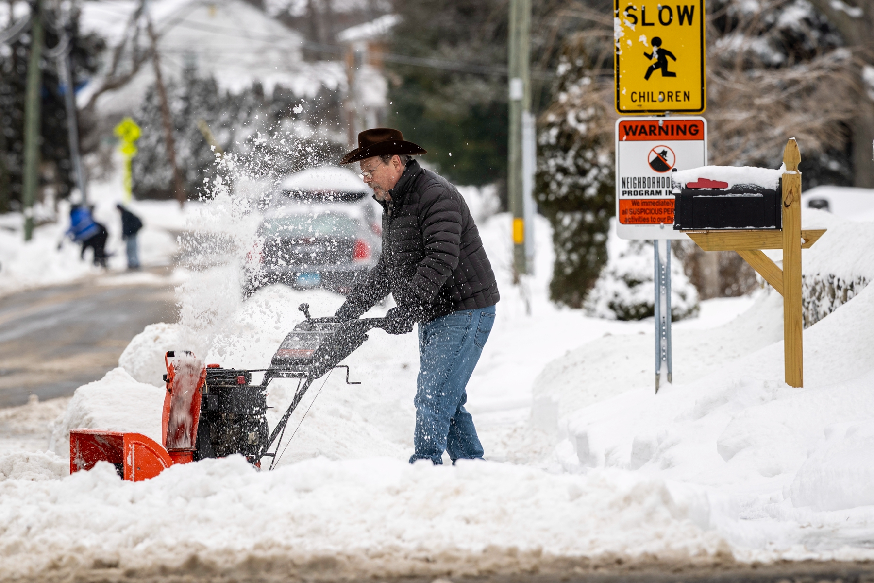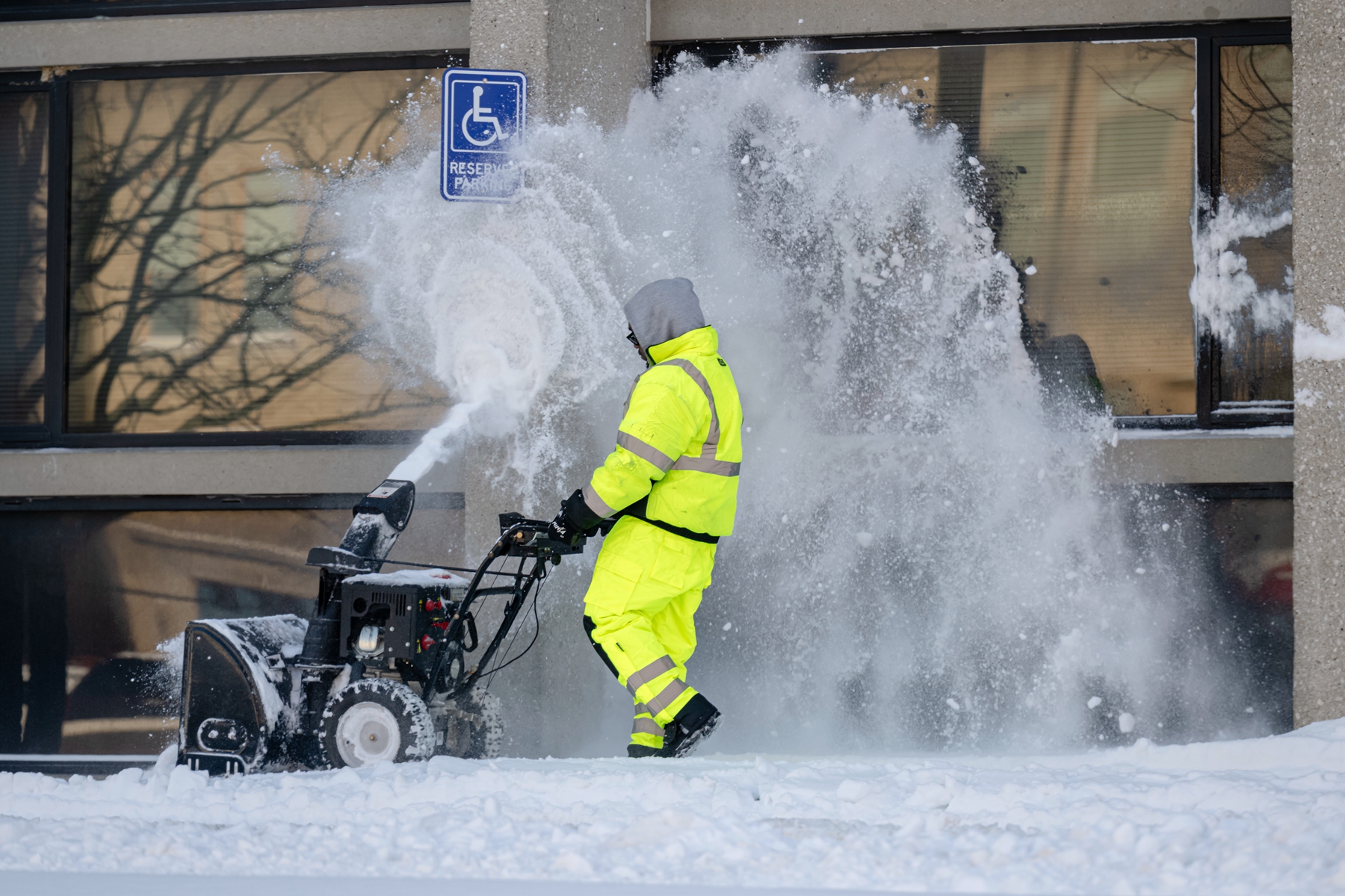 2026年1月26日,马里兰州银泉,工人使用吹雪机清理人行道上的积雪。(Chip Somodevilla/Getty Images)路易斯维尔