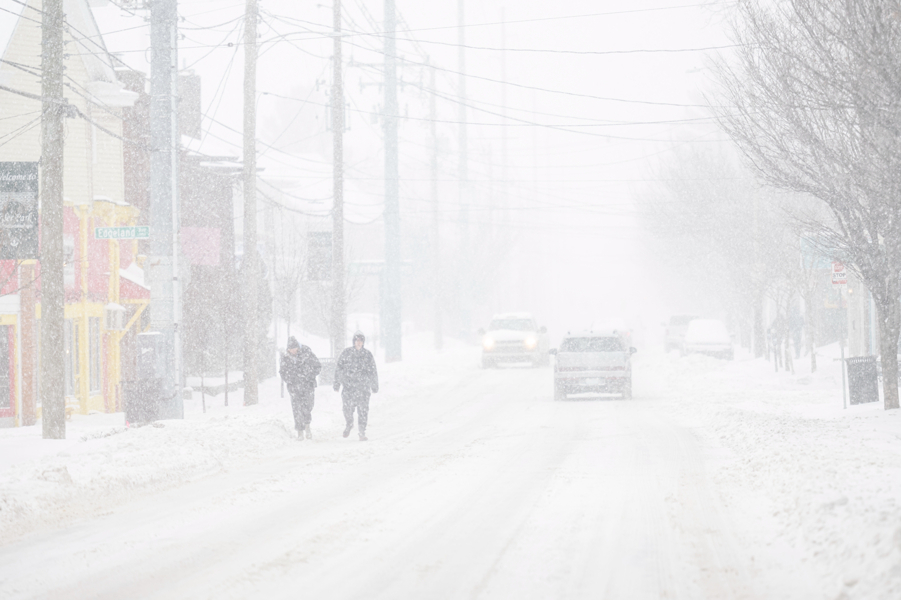 2026年1月25日,肯塔基州路易斯维尔,人们在布满积雪的街道上行走,周围白茫茫一片。(Jon Cherry/Getty Images)