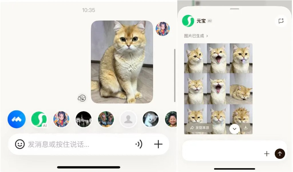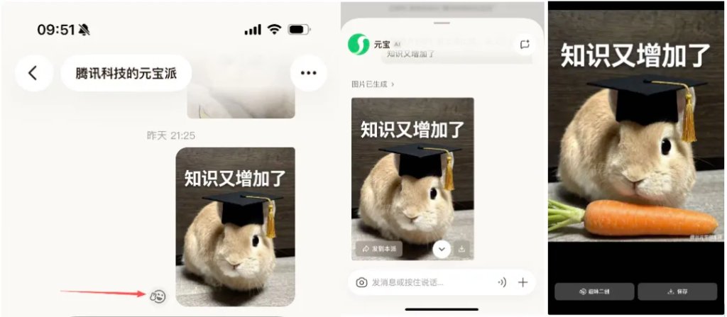 如果说@元宝是“元宝派”的“大脑”,那么图片二创功能就是它的“四肢”——创造力和乐趣的源泉。将AI生成的多模态与社交结合,得到了淋漓尽致的体现。
