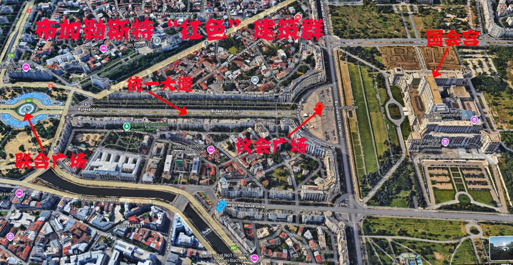 布加勒斯特最具时代印记的城市区域之一是以国会宫(原共和国大厦)为核心,沿着议会大道——当年被称为“社会主义胜利大道”——向外展开,连同周边成片建筑,构成一幅高度集中、尺度惊人的城市景观。整个区域几乎全部建于1980年至1989年之间,也就是罗马尼亚共产政权终结前的最后十年。