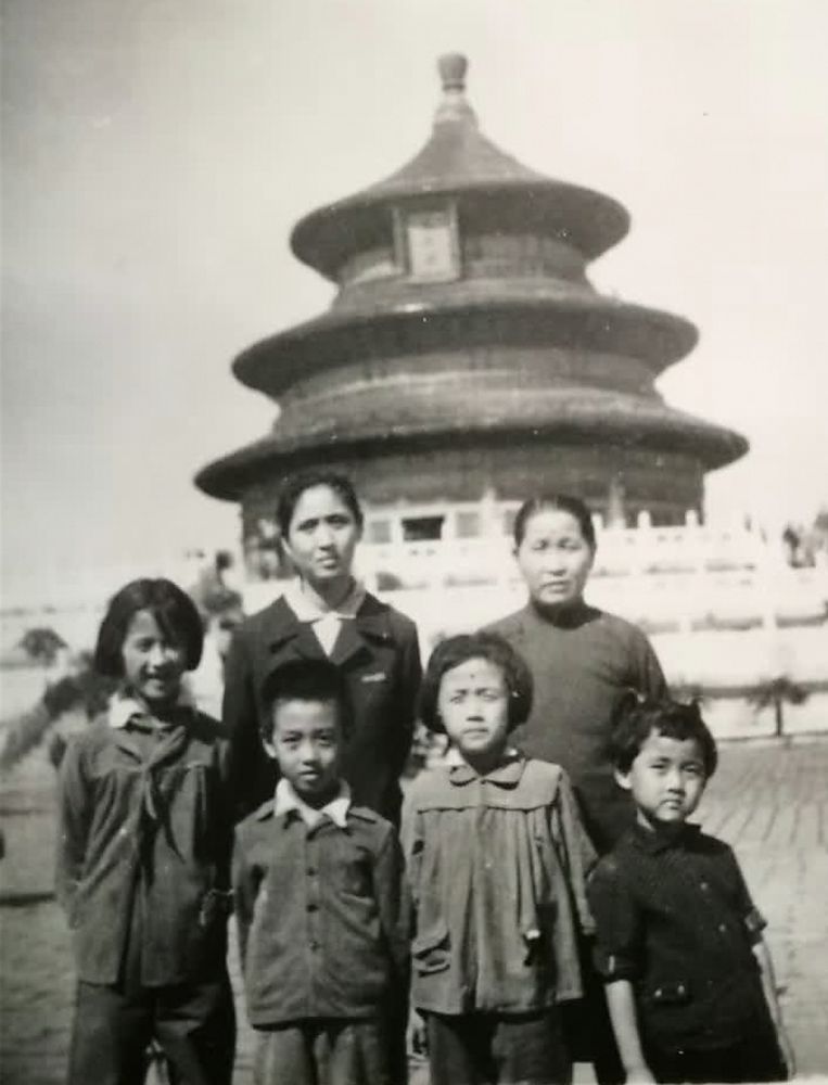 (这张照片是文革前照的,我妈旁边的是保姆,我们称她大娘,照片上的老妈愁眉不展,似乎预感到了什么。几年后我家四分五裂,最后连我妈也必须走,她挣扎扯皮无效,只好把我们几个丢在北京。临行前老妈三番五次去找大娘,她那时在别人家工作,想把大娘请回来照看我们,未果,记得好像大娘的工资要求过高,我妈无力承担,我爸的工资被扣,我们每月只有生活费。我妈最后的稻草是五姨,她千叮咛万委托,尽管是亲姐妹,可谁家都有一脑门子事,但五姨对我们可谓全心全意,比对她自家人都上心,我至今感恩。)