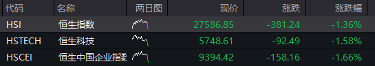 港股:截至发稿,恒指跌1.36%,恒科指跌1.58%。
