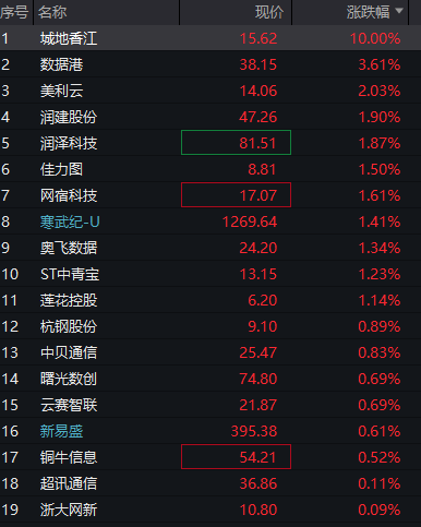 早盘算力租赁概念震荡走强,阿里云方向领涨,宏景科技涨超10%,续创历史新高,城地香江触及涨停,协创数据、利通电子、亚康股份、美利云跟涨。
