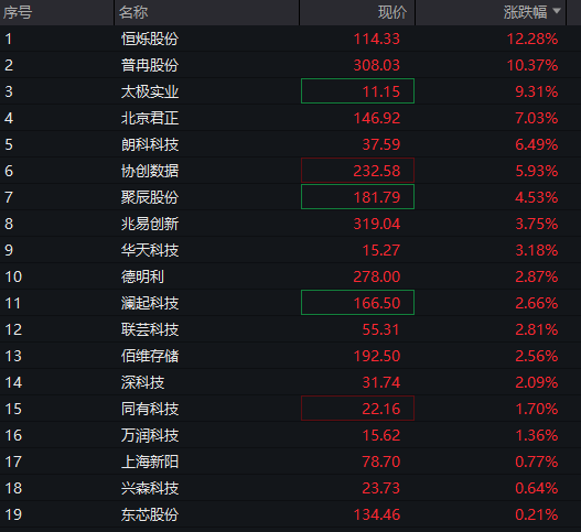 存储芯片概念反复活跃,恒烁股份涨超10%,续创历史新高,怡亚通涨停,普冉股份、朗科科技、北京君正、兆易创新跟涨。