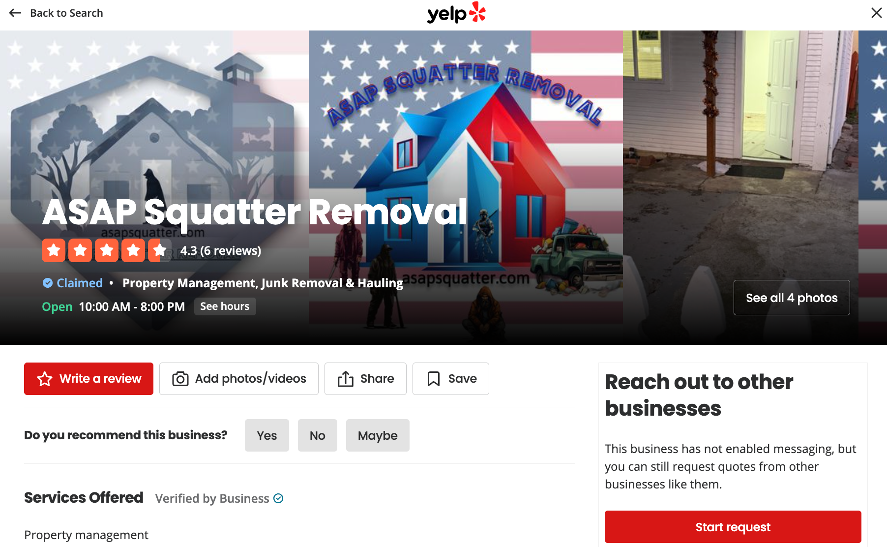 其中一条评论写道:“遇到占屋者问题,当地执法部门无法提供帮助,ASAP在短短三天内解决了我的问题。”