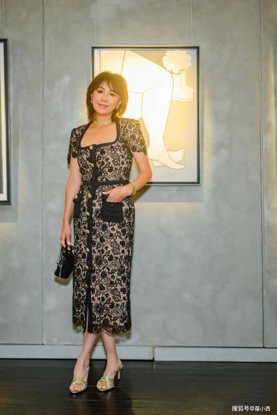 出席活动时,刘嘉玲的这一条黑色蕾丝连衣裙搭配自带复古质感,镂空花纹精致却不艳俗,底色的裸色中和了黑色的厚重感,让整体造型轻盈又显质感。方领设计露出了恰到好处的锁骨线条,保留了成熟女性的端庄,还比圆领多了几分精致感。