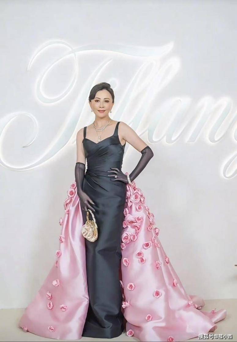 宝蓝色本身就很时髦,饱和度高、自带冷调贵气,不是谁都能驾驭,但刘嘉玲选的这款丝质面料连衣裙,垂坠感刚好贴合身体曲线,勾勒出腰臀的饱满轮廓,又不会因为紧绷显得低俗,挂脖和斜肩设计是整个造型的点睛之笔,露出肩颈线条,利落又带着点不经意的性感,配上她的直角肩,整个人的气场瞬间就立住了。