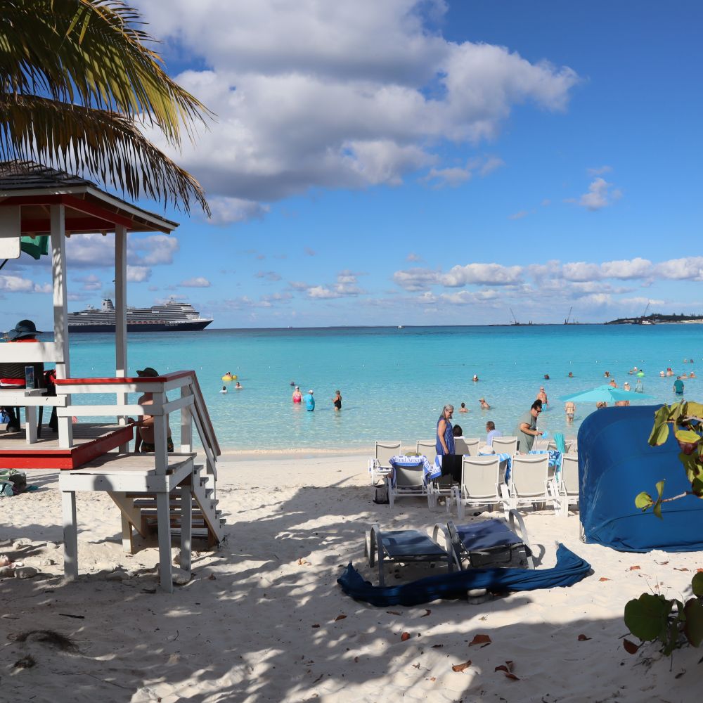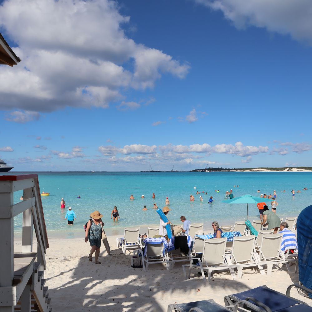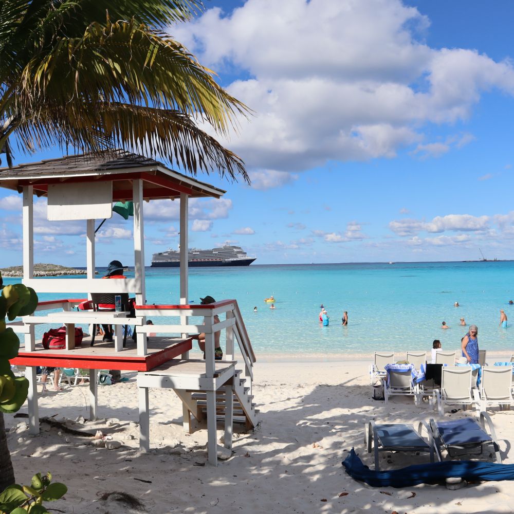 巴哈马群岛中的半个月湾 ( Half Moon Cay ) 是位于巴哈马群岛的一个私人岛屿,以其原始的自然美景,细腻的白沙滩,清澈见底的渐变蓝色和丰富的海上活动而闻名,常作为邮轮停靠点,提供浮潜,滑翔伞,海边骑马等服务,是邮轮游客享受热带风情,远离喧嚣目的地。这样一个私人岛屿,由荷美航运所有,被用作该地邮轮的港口。此前由Half所拥有,半月礁/半月湾由荷美航运在1996年12月花费600万美元购买了该岛屿。