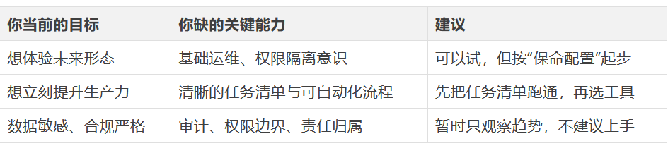 ? 真要上手,第一原则是隔离:专机/专用账号/最小读写范围/白名单触发/敏感操作二次确认。