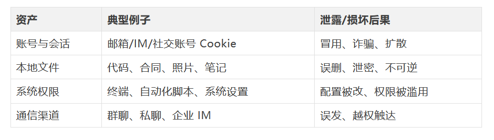 这句话没错,但太粗。更专业的说法是:你的资产、入口、执行器、信任边界同时被放大了。