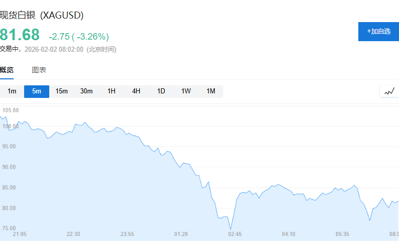 周一,受川普提名沃什为美联储主席冲击,贵金属继续遭遇猛烈抛售,现货黄金一度大跌4%,白银最深跌幅接近12%,美股期货、原油也纷纷走低。