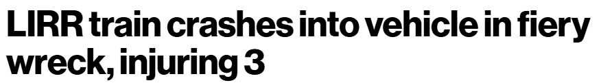 据MTA警方称,这列从Jamaica开往Ronkonkoma的东行客运列车,于晚上约7点15分,在Pinelawn station以东的Little East Neck Road道口撞上了一辆车辆。