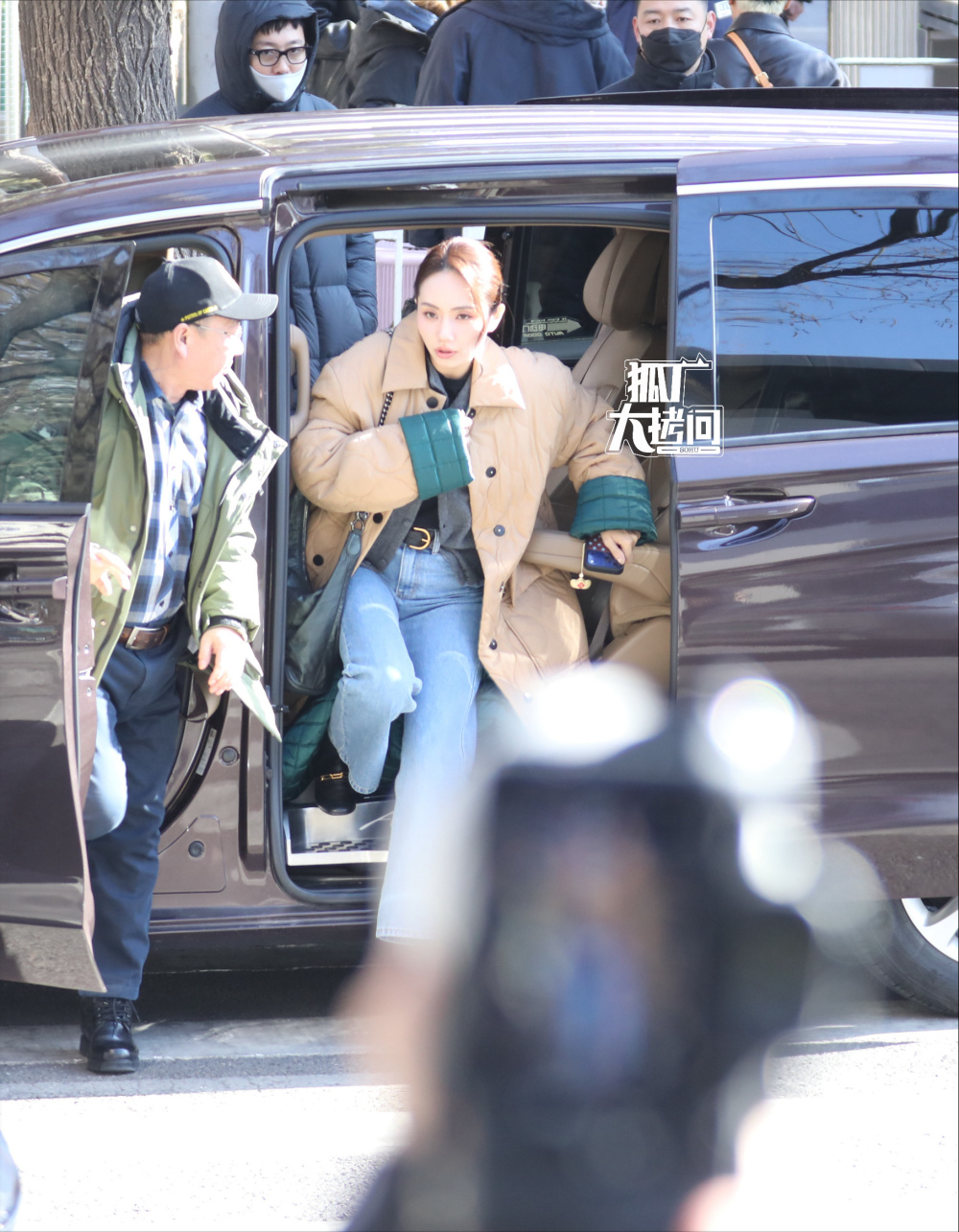 汪苏泷身穿白色羽绒服清清爽爽,下车时尖叫声此起彼伏,人气是真高。
