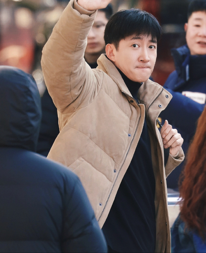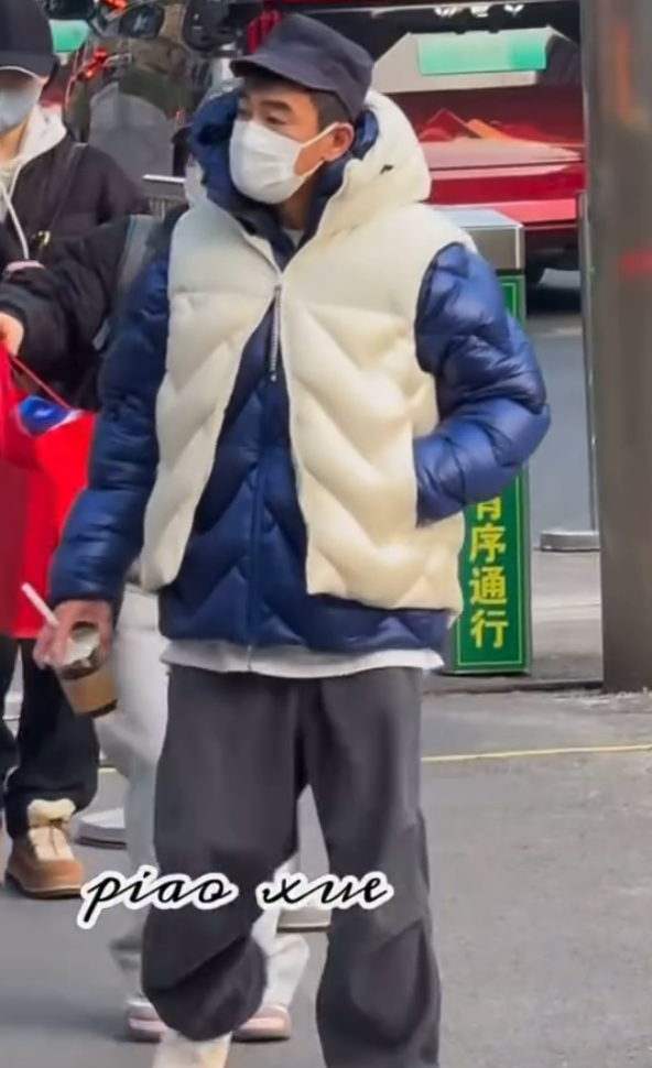只能说香港人是真不抗冻,春哥羽绒服外套上还要加羽绒服马甲,好一个叠穿。