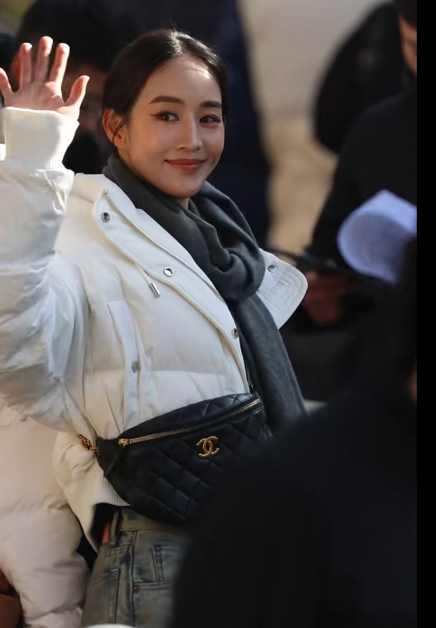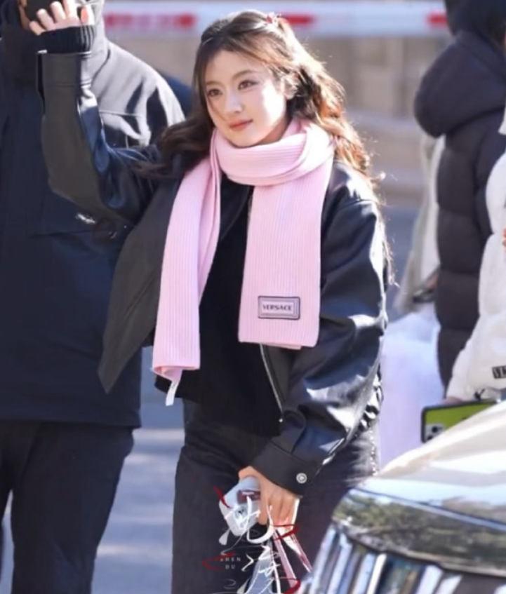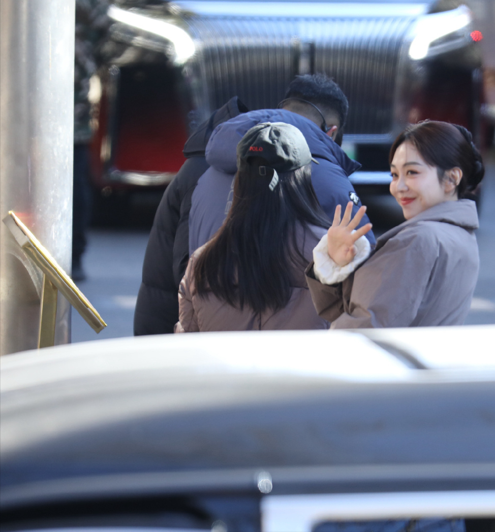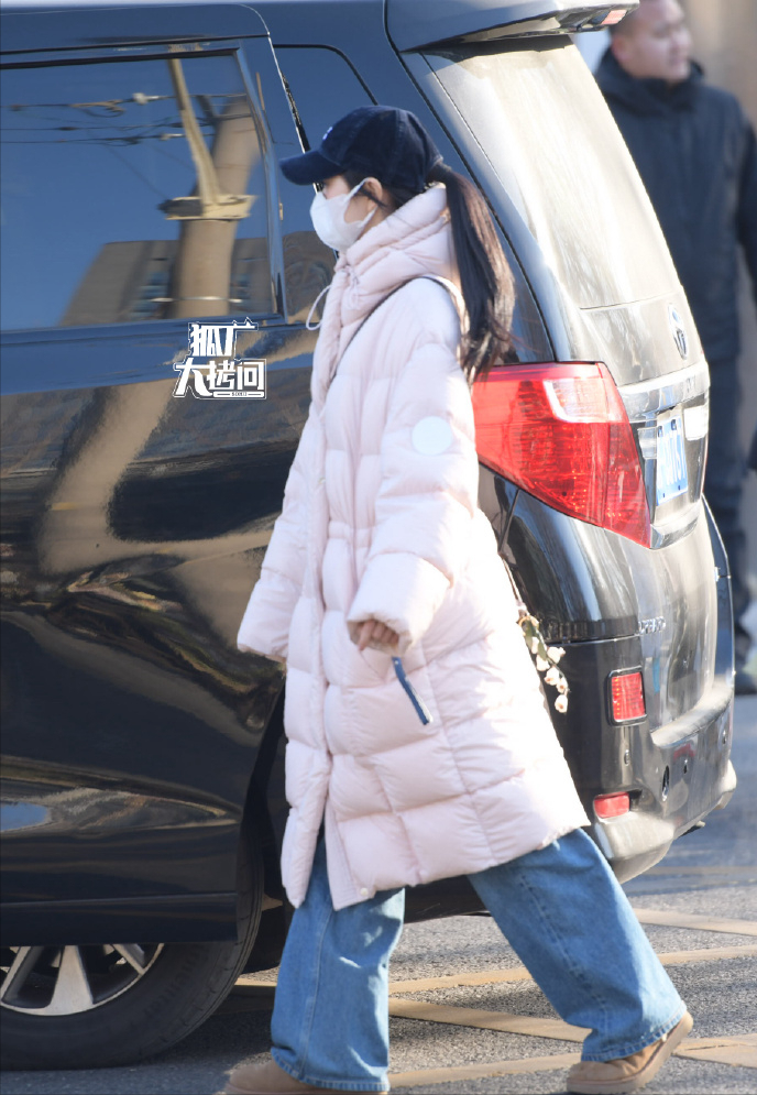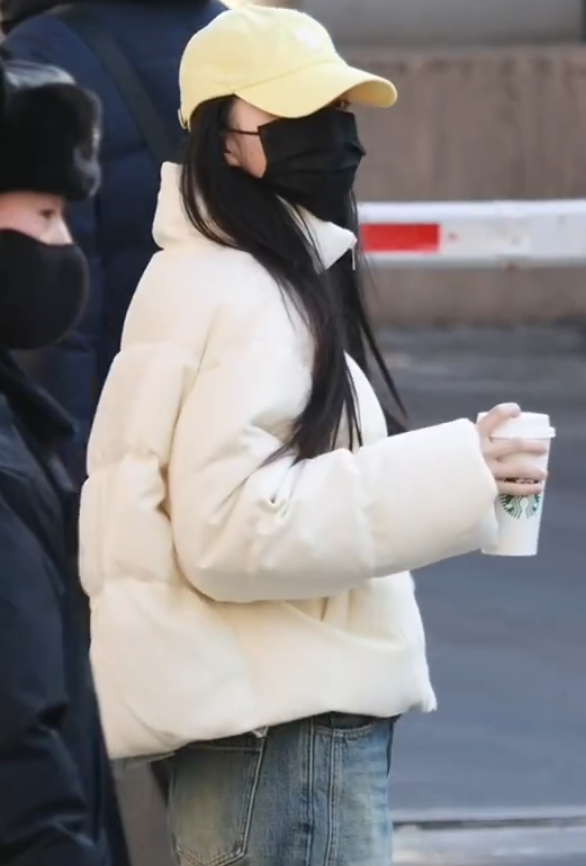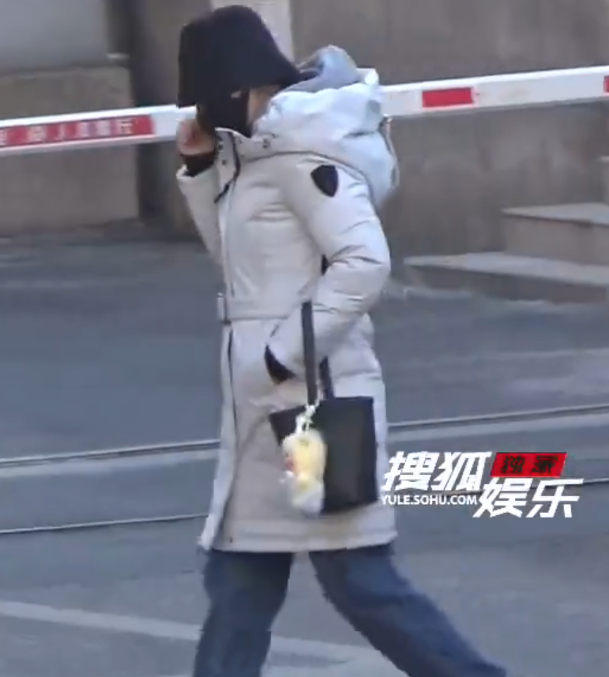 王楚然穿得像个奶呼呼的白面包,边走边喝咖啡,遮这么严实我都看到了她忽闪忽闪的大眼睛。