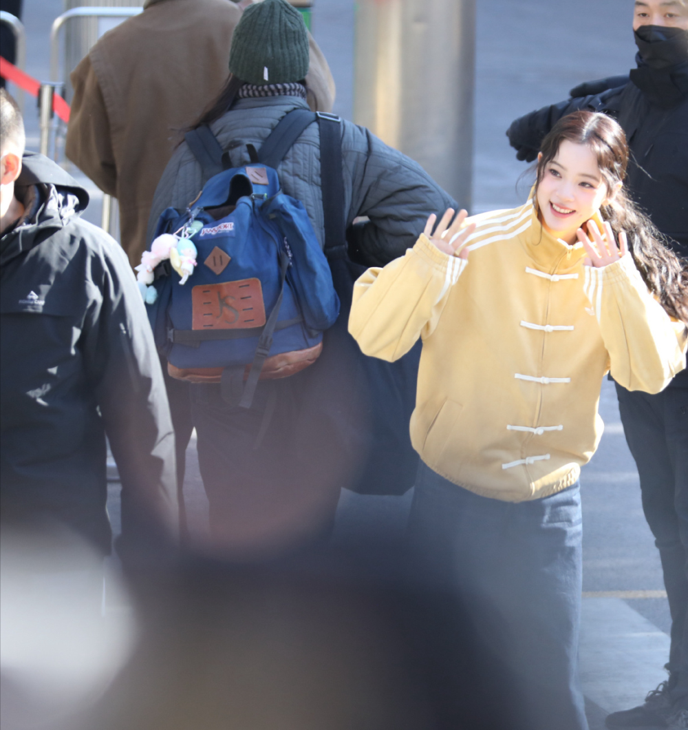 热依扎全副武装,包裹得严严实实,却也被眼尖的粉丝认出来,包包上的玩偶好可爱。