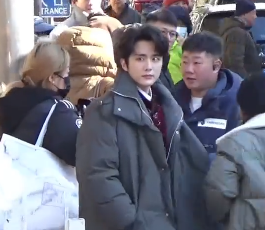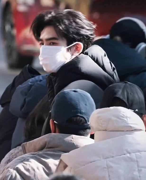 宋威龙妆发齐全,身高瞩目,戴着口罩露出浓眉大眼,每次亮相都是偶像剧男主式的出场。