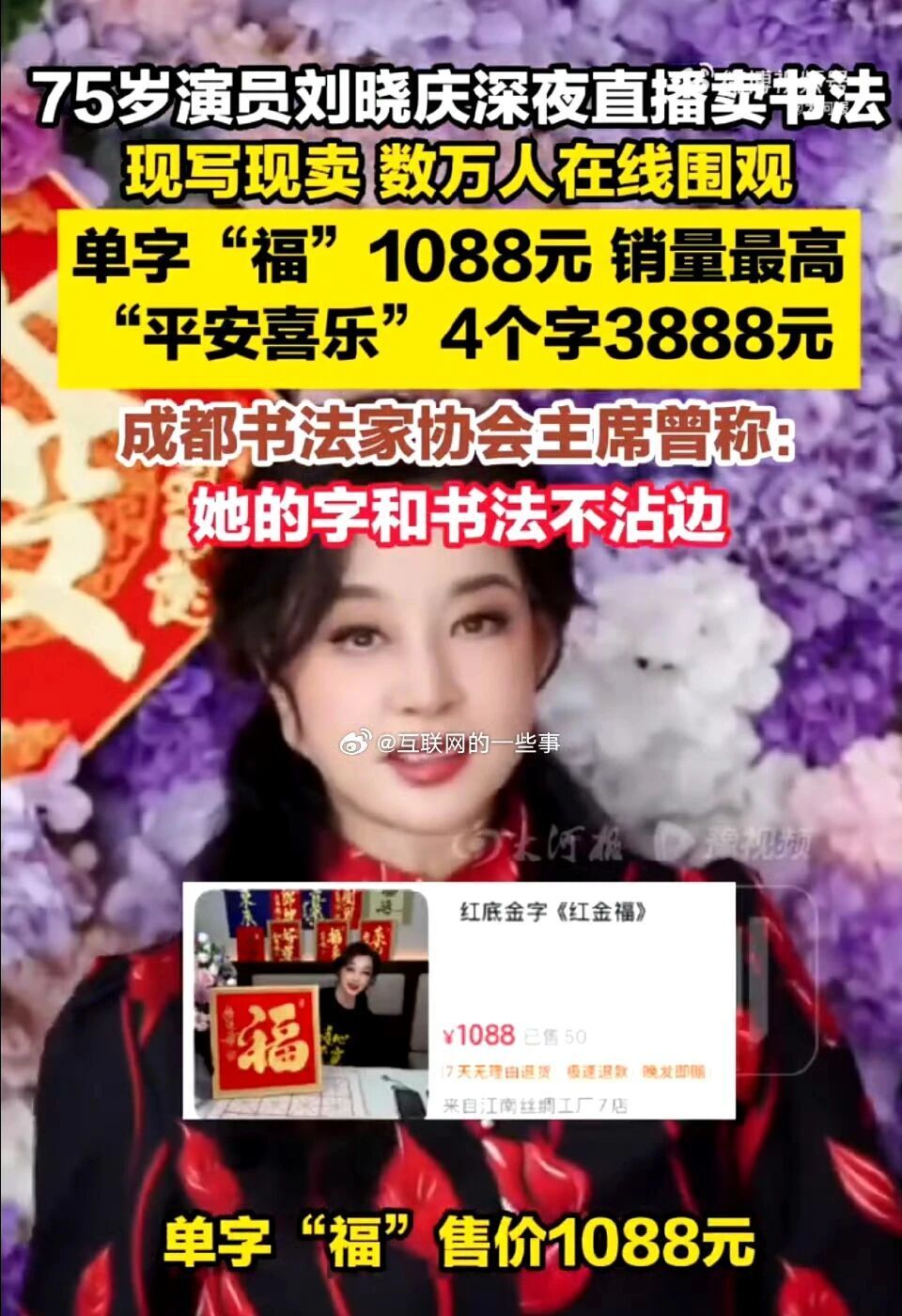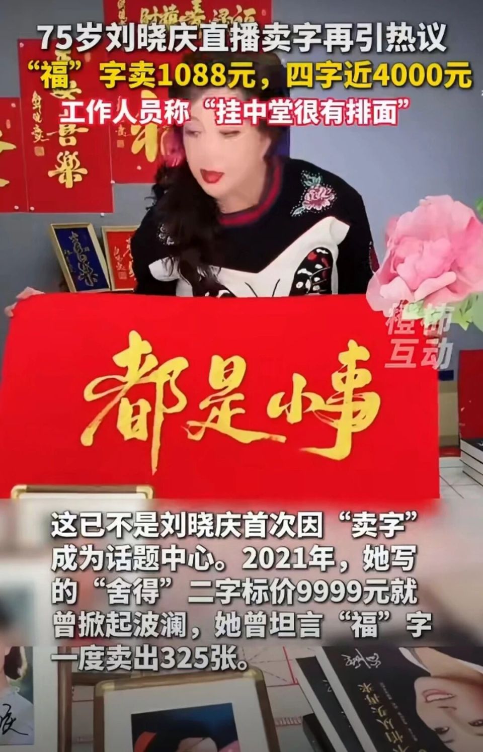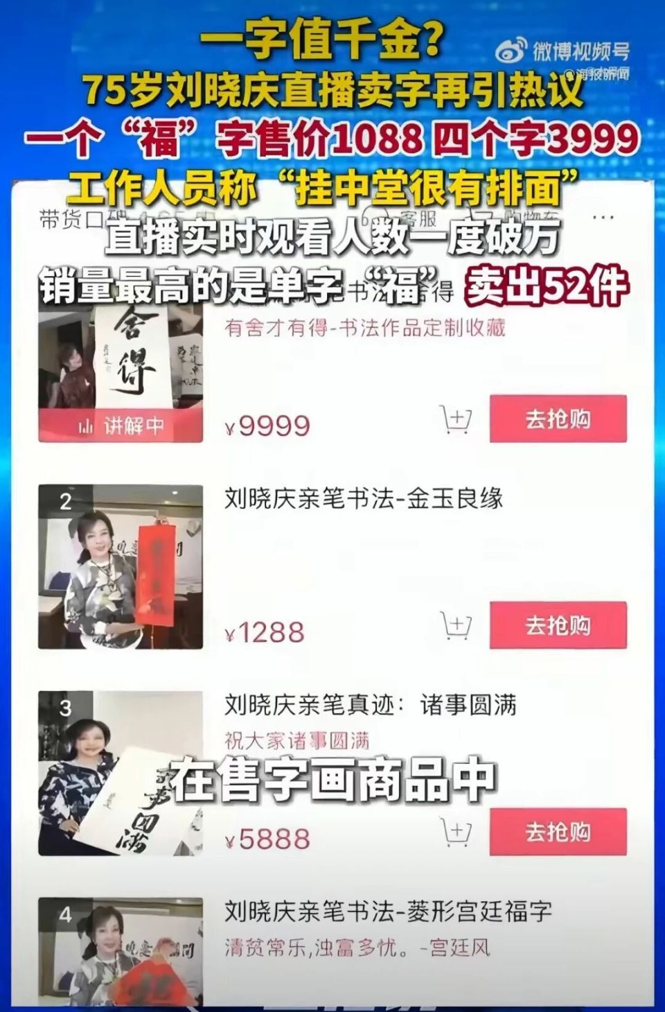 刘晓庆直播卖字:一个字1088元