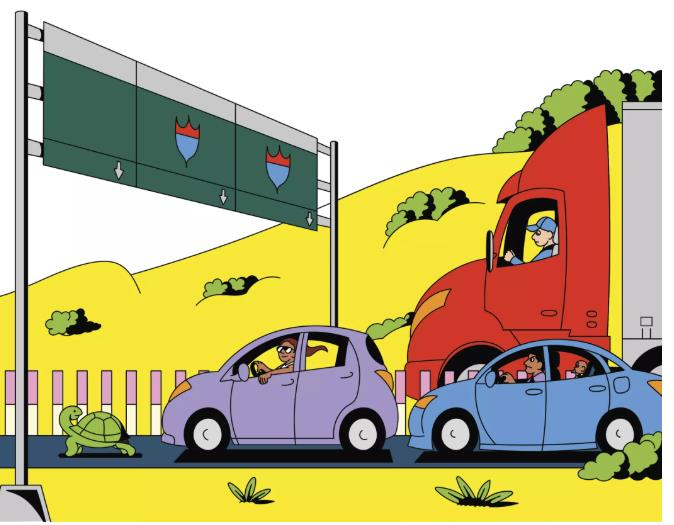 当然,在交通拥挤或恶劣天气下,你必须减速慢行。但是,千万不要因为开得太慢而阻碍正常的交通。还有,如果你要坚持要慢速行驶,请离开左侧车道(left lane,又称快车道),好让其他人用左侧车道超车。