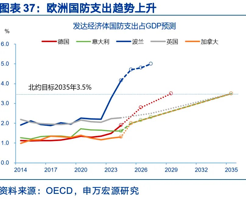欧元区财政扩张集中在国防领域,借助国防推进欧洲版再工业化。国防可能成为欧洲财政边际扩张的新锚点,欧元区国防支出占GDP比重预计从2025年的1.4%上升至2026年的1.7%。一方面,欧盟在规则上给予国防更广的豁免空间。2025年,15个欧盟成员已启动国防支出豁免条款,包括比利时、克罗地亚、爱沙尼亚、芬兰等,允许在未来四年内额外增加占GDP1.5个百分点的国防支出。另一方面,在重新武装欧洲计划下,欧盟层面提供最高1500亿欧元的长期低息贷款,用于成员国防产业投资。贷款在2026年启动拨付,提供一次性15%的预融资,采购装备需是欧洲本土制造,非欧盟零部件不得超过35%,实质是希望以国防工业为核心,推行供应链本土化。