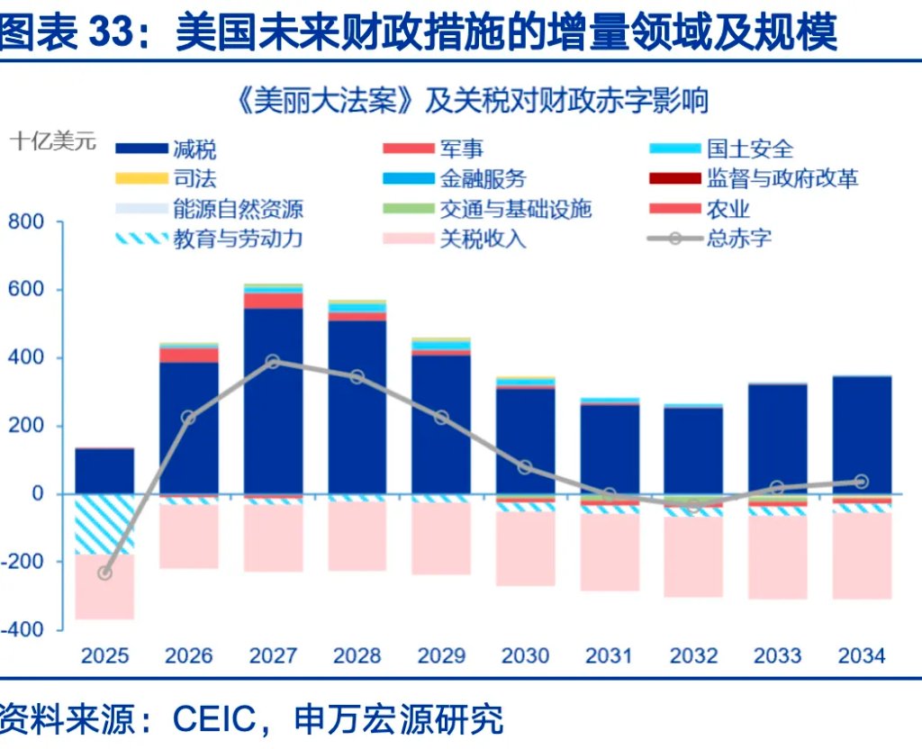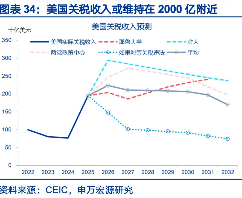 美国通过关税与支出削减进行财政融资,这让关税具备了更强的融资属性,即使关税被判违法,有效关税税率或也仅降低2-3个百分点。2024财年关税收入770亿,2025财年关税收入升至1949亿。即使对等关税被判决违法,川普也可能动用232条款等替代性措施补位,预计2026年关税收入或仅微降至2232亿美元,有效税率或仅小幅下降2-3个百分点。美国财政支出削减量级或相对有限,根据已通过国会立法的项目计算,2026年教育与健康支出或削减210亿,环境与公共工程支出或仅削减10亿。川普也夸大了2025年财政整顿成果,2025年财政支出削减集中在教育领域,总额1770亿,但其仅是学生贷款的账面数据冲抵,实际赤字规模并未减少。