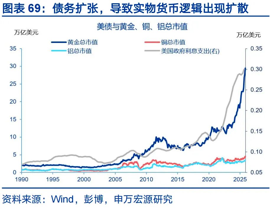 第五,供给端驱动的逻辑强化,或导致部分商品价格上涨具有更强的持续性。财政逻辑的转变,已在实质改写大宗商品的定价逻辑。其一,以工业金属为代表的部分大宗商品开始脱离经济周期,具有独立的产业逻辑支撑。以往,大宗商品定价锚定全球制造业周期,但2022年美国推出《通胀削减法案》以来,新能源、电气化、电网建设需求上升,以工业金属为代表的商品价格脱离周期,出现趋势上升,原油等传统能源需求降低,价格持续低迷。其二、实物货币逻辑扩散。美国债务扩张、霸权滥用以美元信用为代价,作为主权信用的对冲工具,黄金受到直接提振。2025年以来,实物货币属性向外扩散,铜、锑、镓等实物资产也被赋予更强的金融属性。其三、储备溢价上升。关税风险、地缘不确定环境下,关键物资供应中断风险上涨,战略物资储备的刚性需求上升。财政支持的领域,集中在电力基建、军工、半导体等工业链条上、利率敏感型链条难以得到修复,与战略储备需求低相关的油气、铁矿、农产品等或缺少中长期产业逻辑,财政引发的价格上行或更加分化。