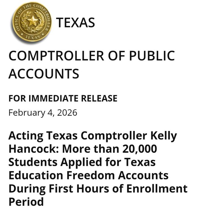 德州家庭自2月4日上午9时起,可开始申请该州全新的“教育储蓄账户”(Education Savings Accounts,ESAs,俗称“学券计划”,“教育券”)。申请窗口将持续开放至3月17日。