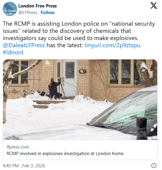 警方在现场缴获了一把枪,并确认了第二名嫌疑人,随后将其逮捕。调查进一步将警方引向位于212 Chesham Place的一处住宅,该地点位于Sarnia Road以南、Wonderland Road以西的一个社区,距离西安大略大学约一公里。警方在该住宅内发现了可用于制造爆炸物的危险化学品,并又逮捕了两名嫌疑人。