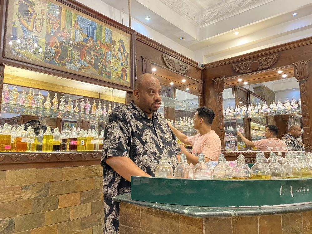 4. 精油店:埃及的香精与精油闻名世界,被认为是香水与芳香疗法的发源地之一,其历史几乎与古埃及文明同样悠久。早在几千年前,古埃及人便掌握了从植物、花朵、树脂和香料中提取香精的技艺。香精不仅用于日常生活,还广泛应用于宗教仪式、祭祀、医药、美容以及木乃伊防腐。在神庙和墓室壁画中,经常可以看到使用香膏和香油的场景。现代埃及香精多为高浓度精油,通常不含酒精,香味纯正持久,而且许多法国香水品牌的原料也都采购自埃及。