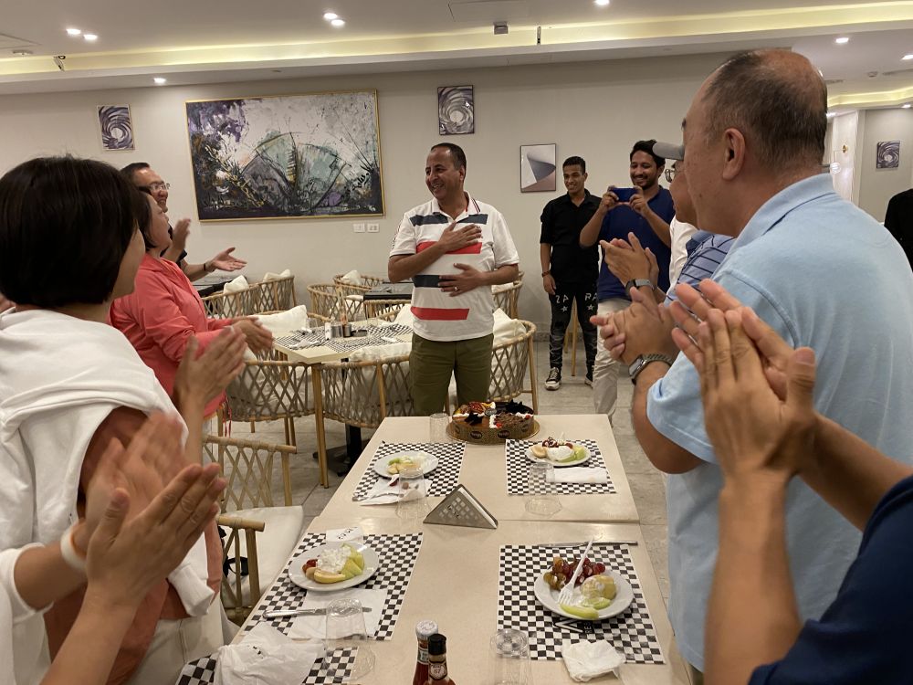 7. 晚餐我们又回到了那家陆军会所。巧合的是,今天正好是大力老师的生日,团友们悄悄委托飞龙老弟准备了一只大蛋糕,并写了一封热情洋溢的感谢信,在晚餐时全体宣读。大力老师非常感动,也让这顿最后的晚餐增添了特别的意义和温馨的回忆。