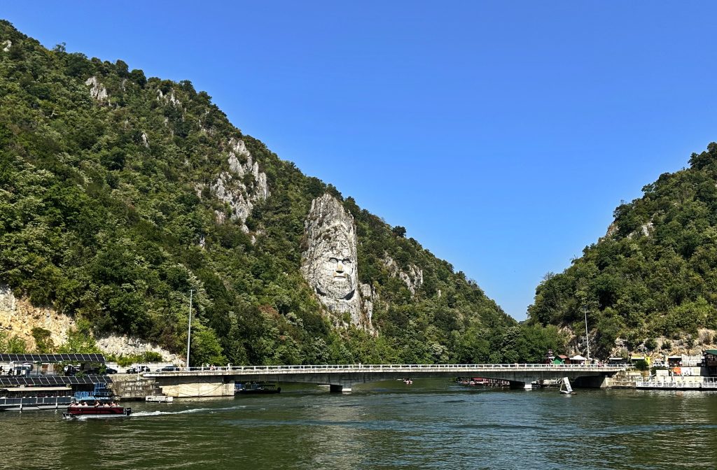 铁门峡(Iron Gate)是多瑙河上最壮丽、也最具观赏性的航段之一。游船缓缓驶入峡谷,两岸岩壁陡然收紧,灰白色的石灰岩峭壁直插云霄,层层褶皱如同被岁月刻出的史诗。河面在此变得深邃而平静,倒映着悬崖、云影与偶尔掠过的飞鸟以及峡谷间散落着古老遗迹,岩壁上的特拉扬浮雕静静俯瞰河流,远处中世纪城堡残垣若隐若现,仿佛守望着千年的水道。