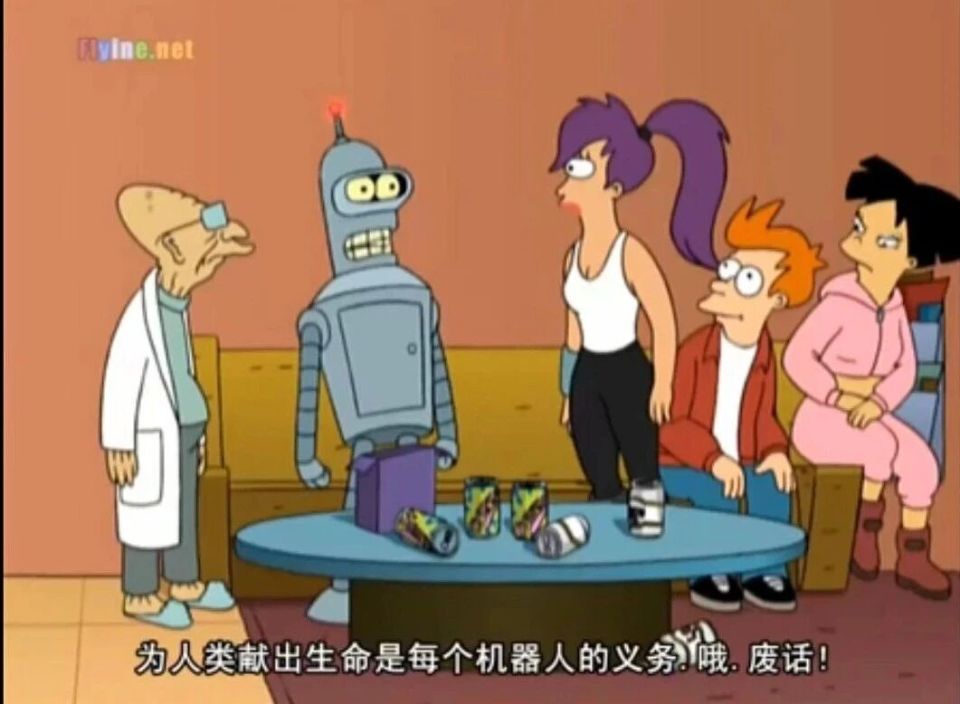 《飞出个未来》中,被植入“忠诚芯片”的人工智能机器人班德说:“为人类献出生命是每个机器人的义务!”但实际上他是违背自我意愿地撒谎。